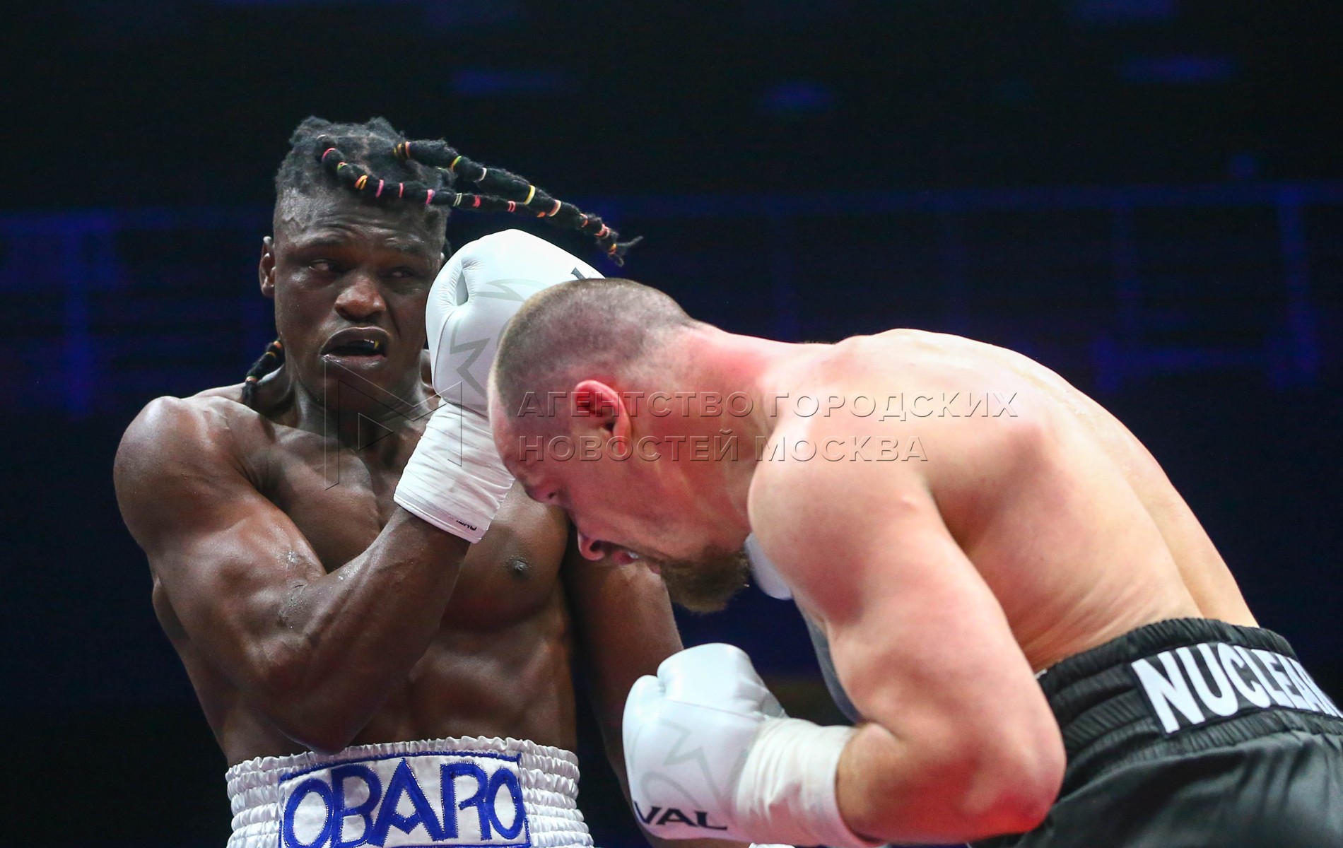 Алексей Егоров (Россия) и Эражадае Обаро (Нигерия) после боя. Вечер профессиональ...