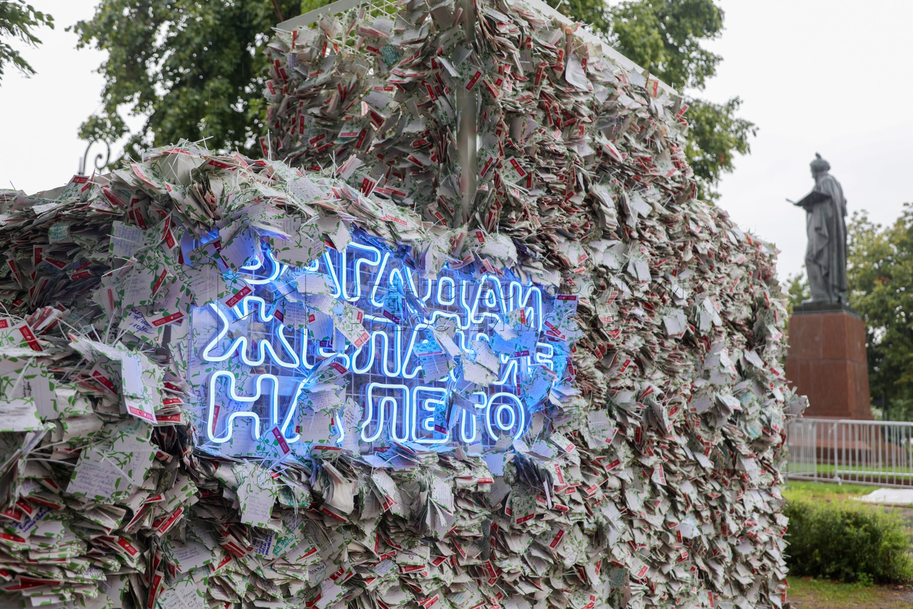 • Описание: Площадка «Стена желаний» на Болотной площади в рамках проекта «Лето в Москве».