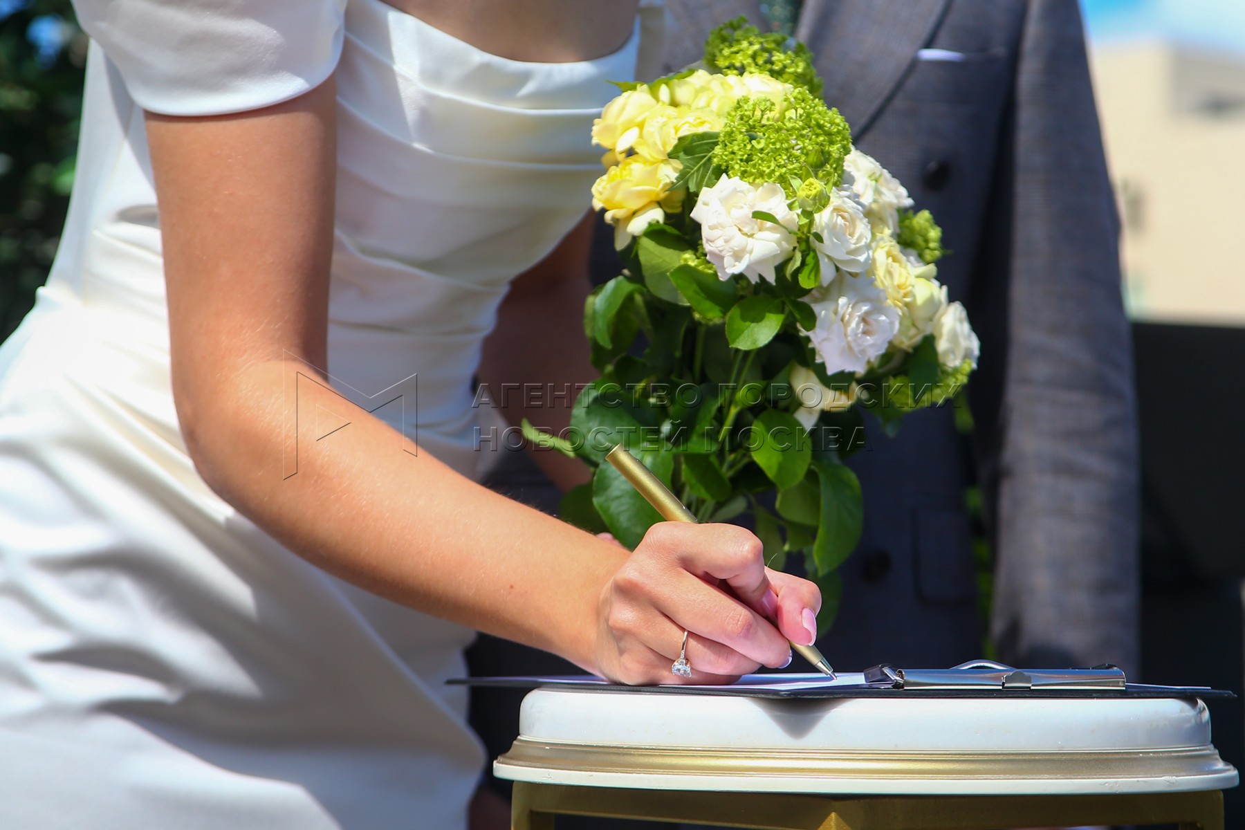 Церемония бракосочетания во время круиза по Москве-реке на двухпалубном лайнере.