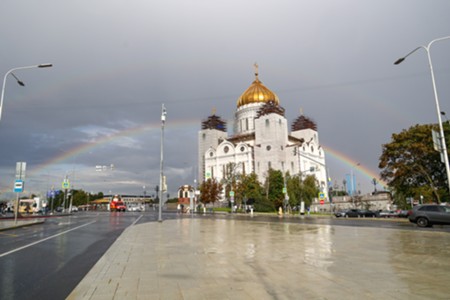 Теги: Дождь , ЦАО , Горожане , Храм Христа Спасителя , Зонтики , Виды города , радуга , Виды Москвы