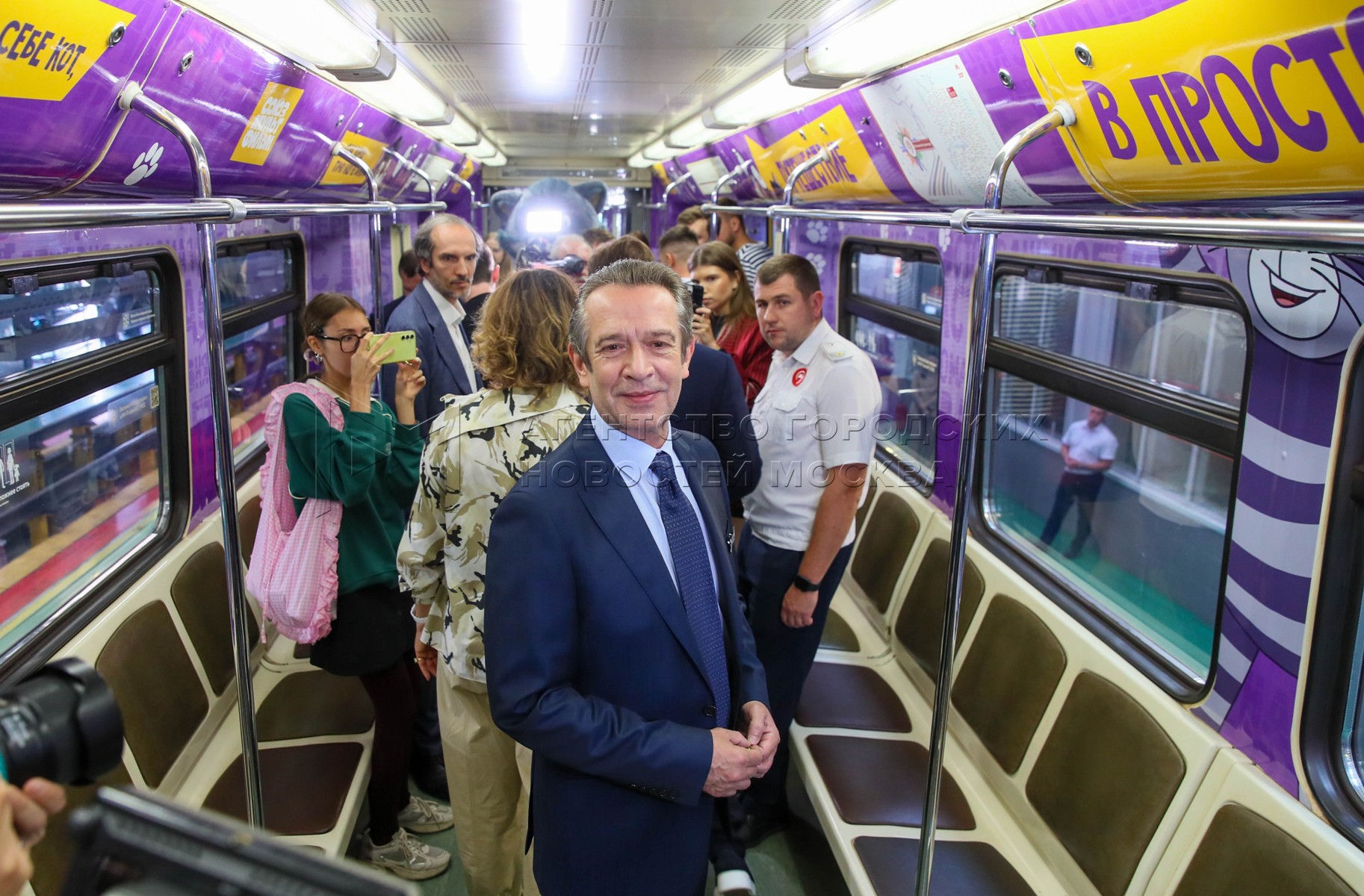 Художественный руководитель Театра Олега Табакова Владимир Машков. Запуск в электродепо «Аминьевское» тематического поезда с оформлением к 90-летию со дня рождения народного артиста СССР Олега Табакова.