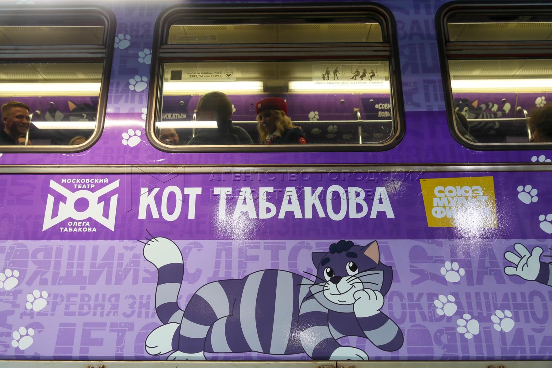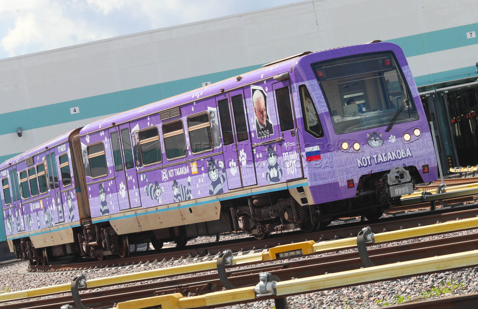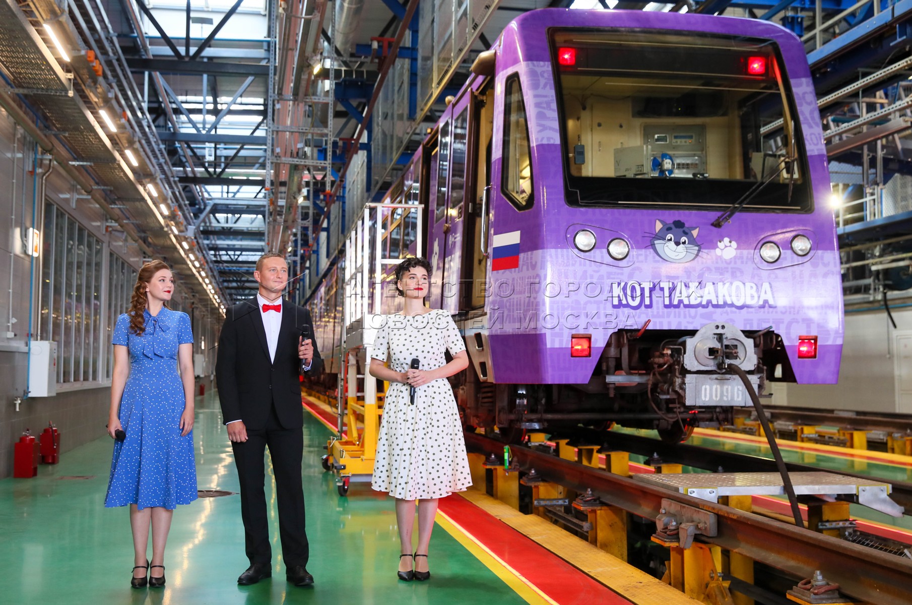 - Описание: Вдова О. Табакова, народная артистка России Марина Зудина, художественный руководитель Театра Олега Табакова Владимир Машков, председатель совета директоров киностудии «Союзмультфильм» Юлиана Слащева и заместитель мэра Москвы по вопросам транспорта Максим Ликсутов (слева направо). Запуск в электродепо «Аминьевское» тематического поезда с оформлением к 90-летию со дня рождения народного артиста СССР Олега Табакова.