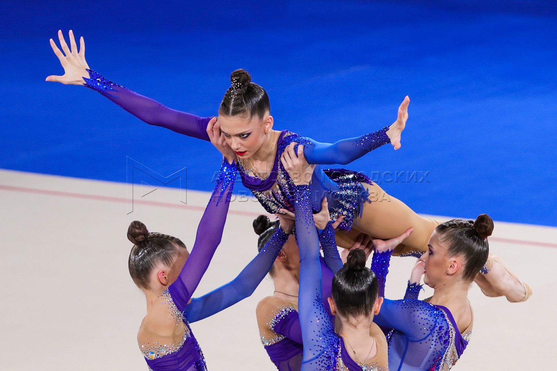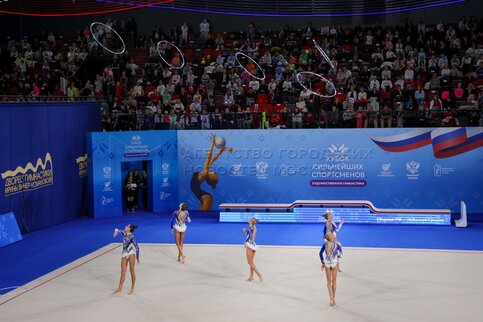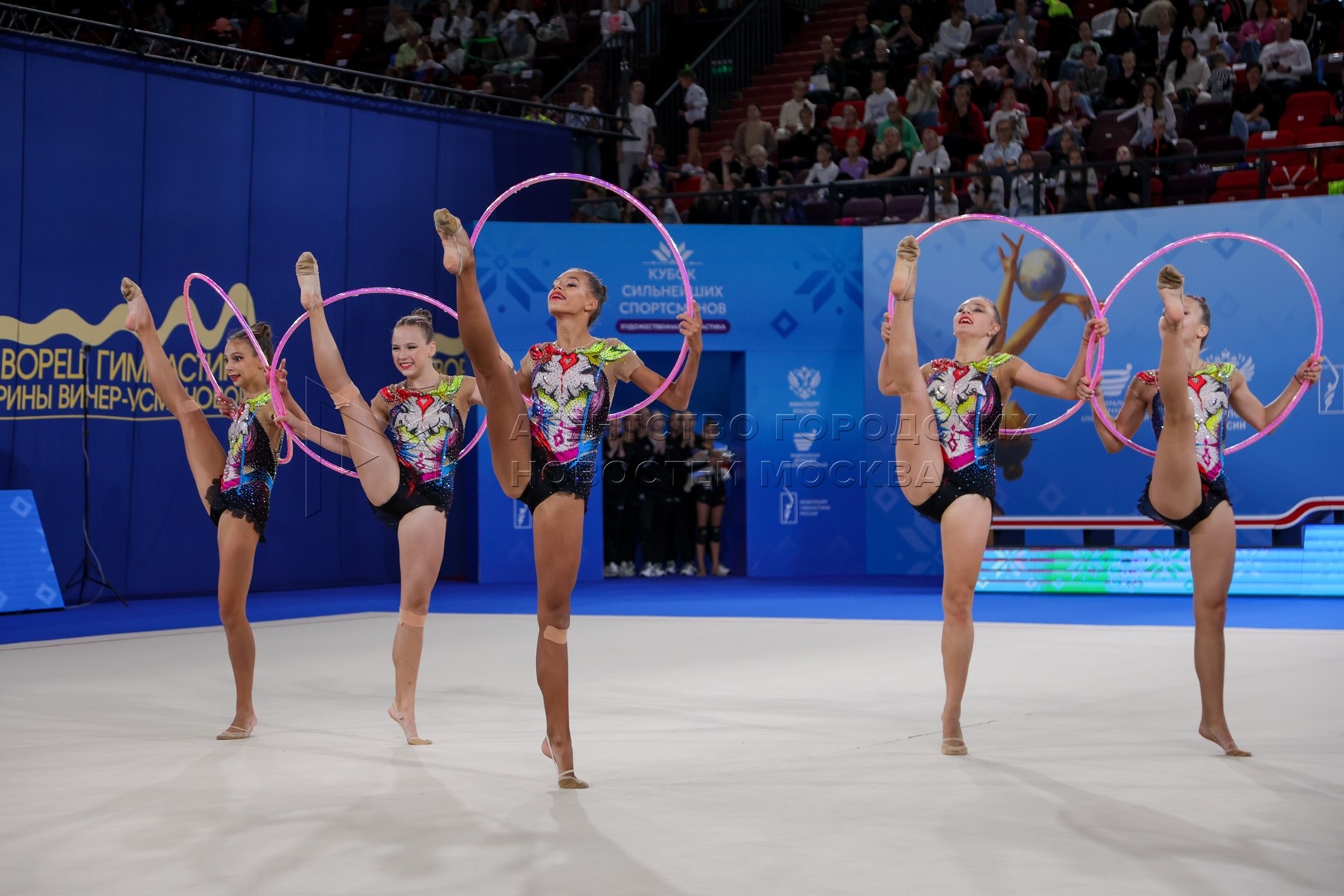 Групповые упражнения с обручем в заключительный день международных соревнованиях ...