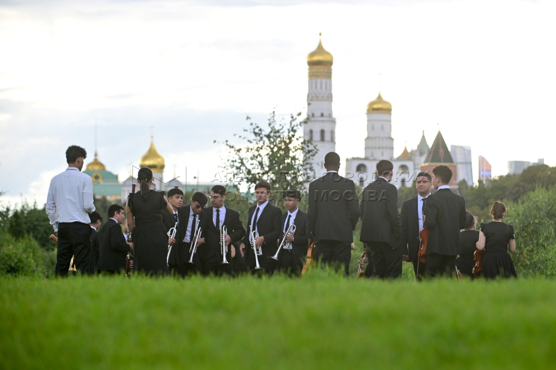 - Описание: Музыканты Симфонического оркестра Франсиско де Миранда El Sistema (Венесуэла) перед началом выступления на III Фестивале юношеских оркестров мира под руководством дирижера Юрия Башмета, который проходит с 22 по 24 августа 2025 года в парке «Зарядье» рамках форума «Территория будущего. Москва 2030».
