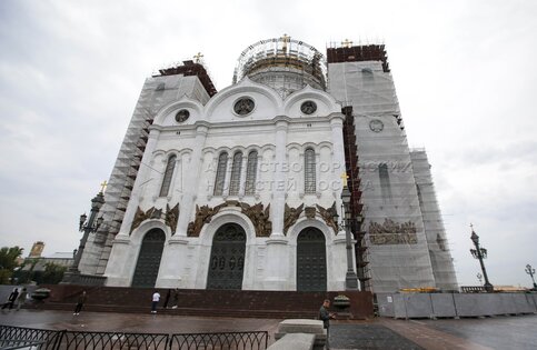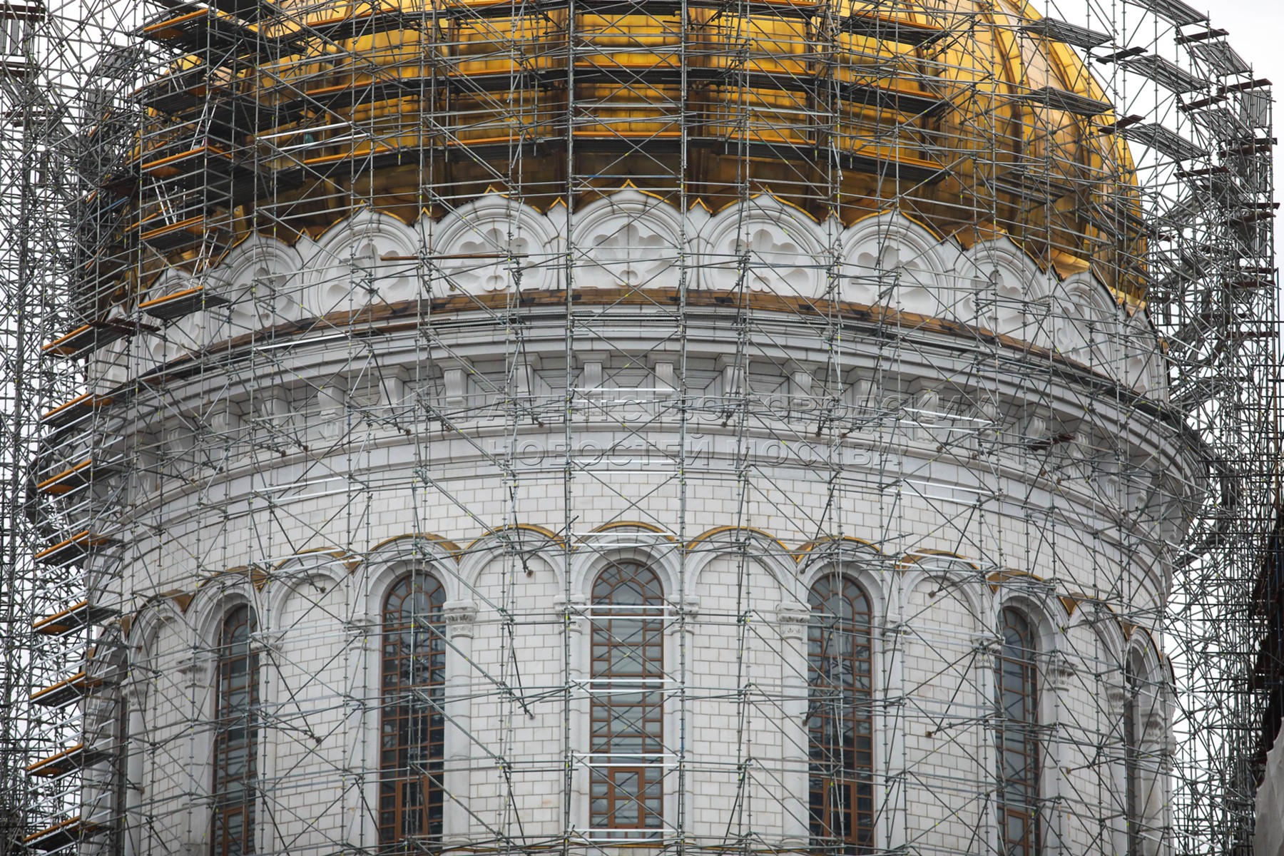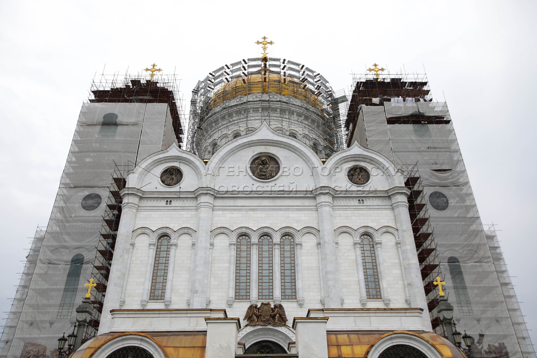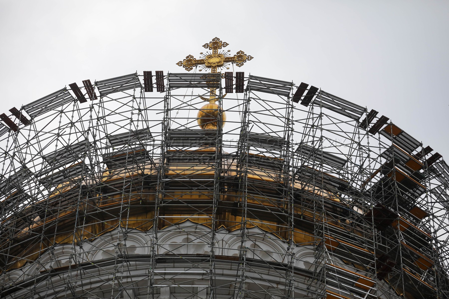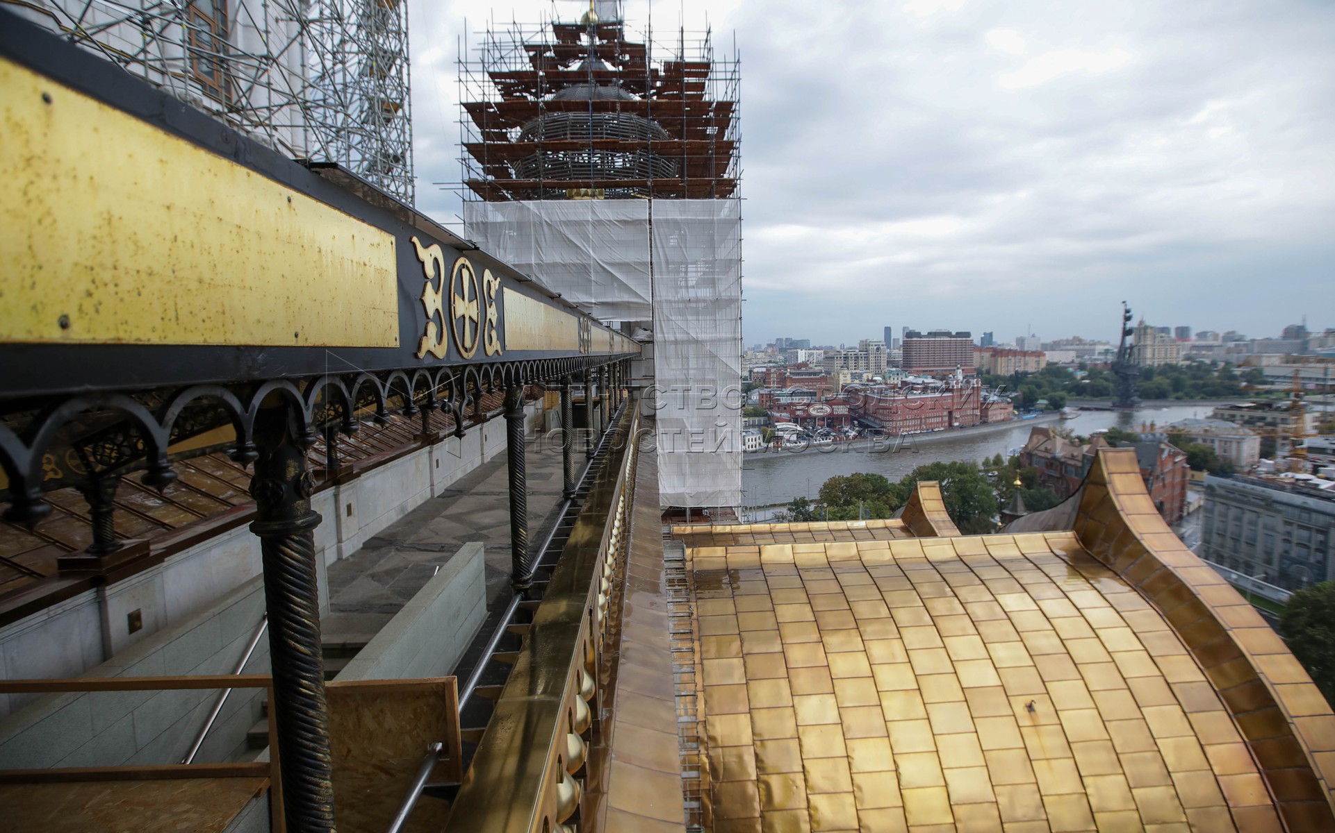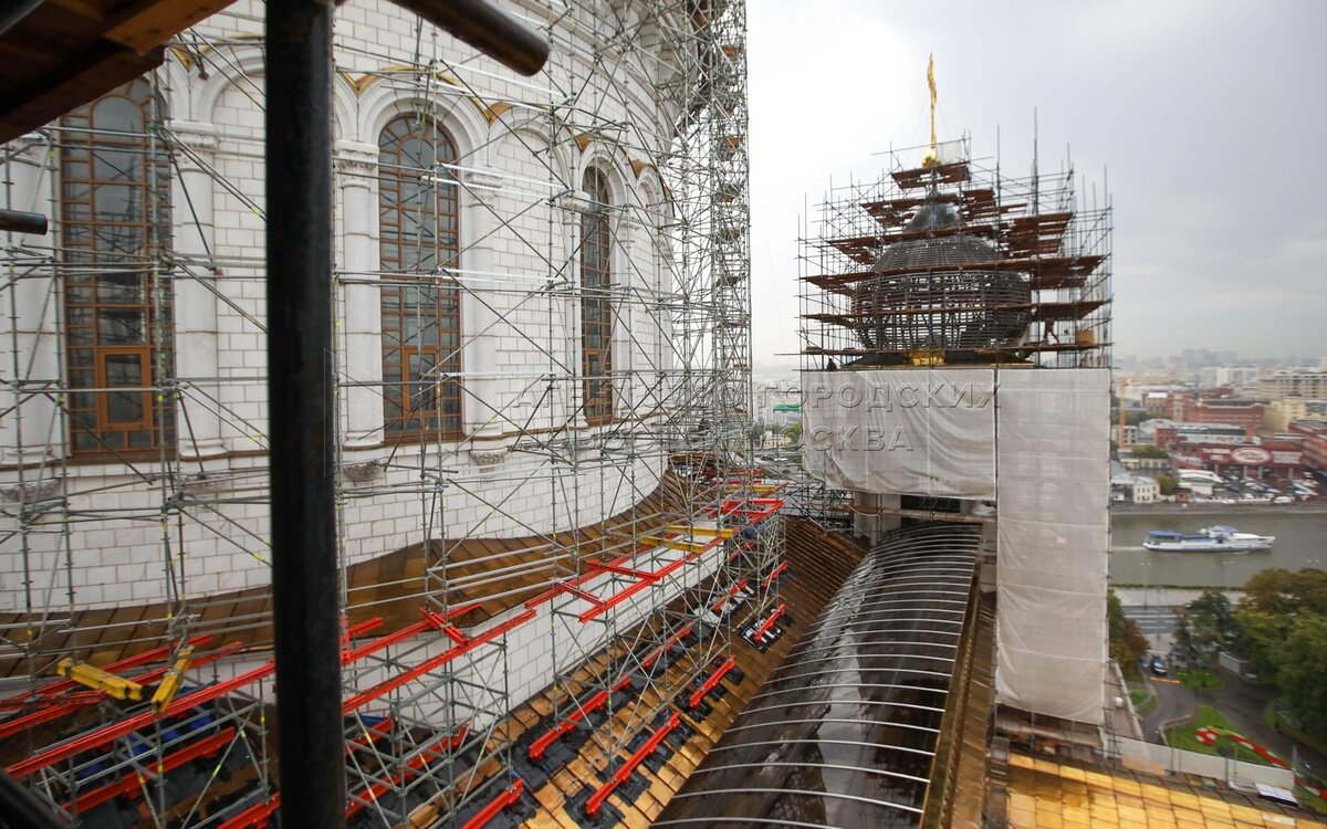 Реставрация куполов четырех звонниц храма Христа Спасителя в центре столицы.
