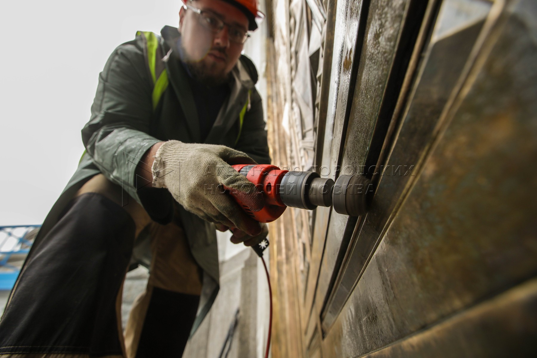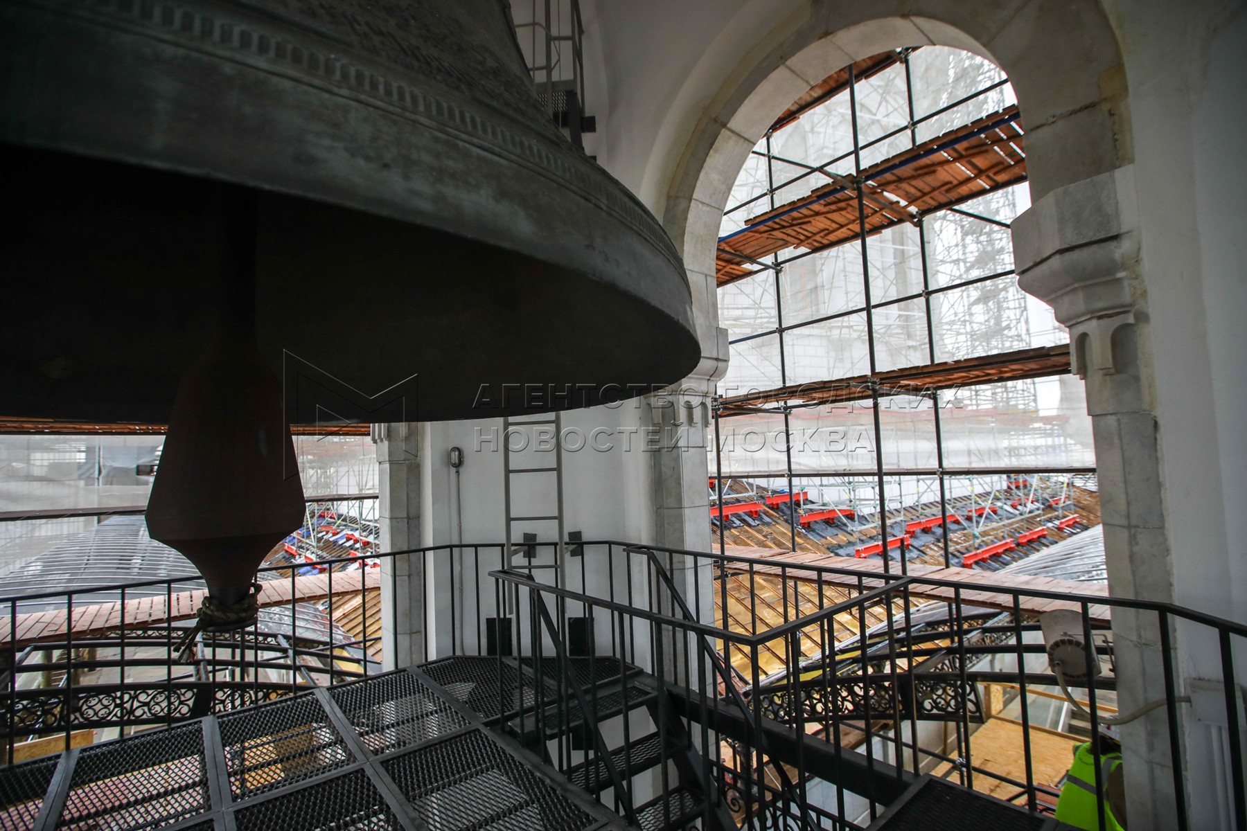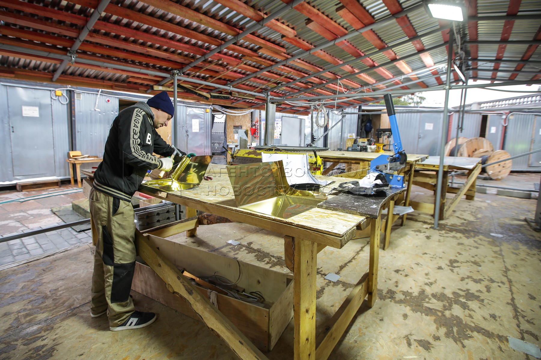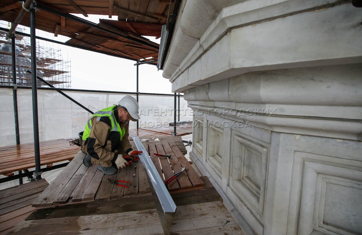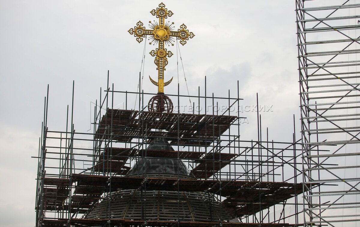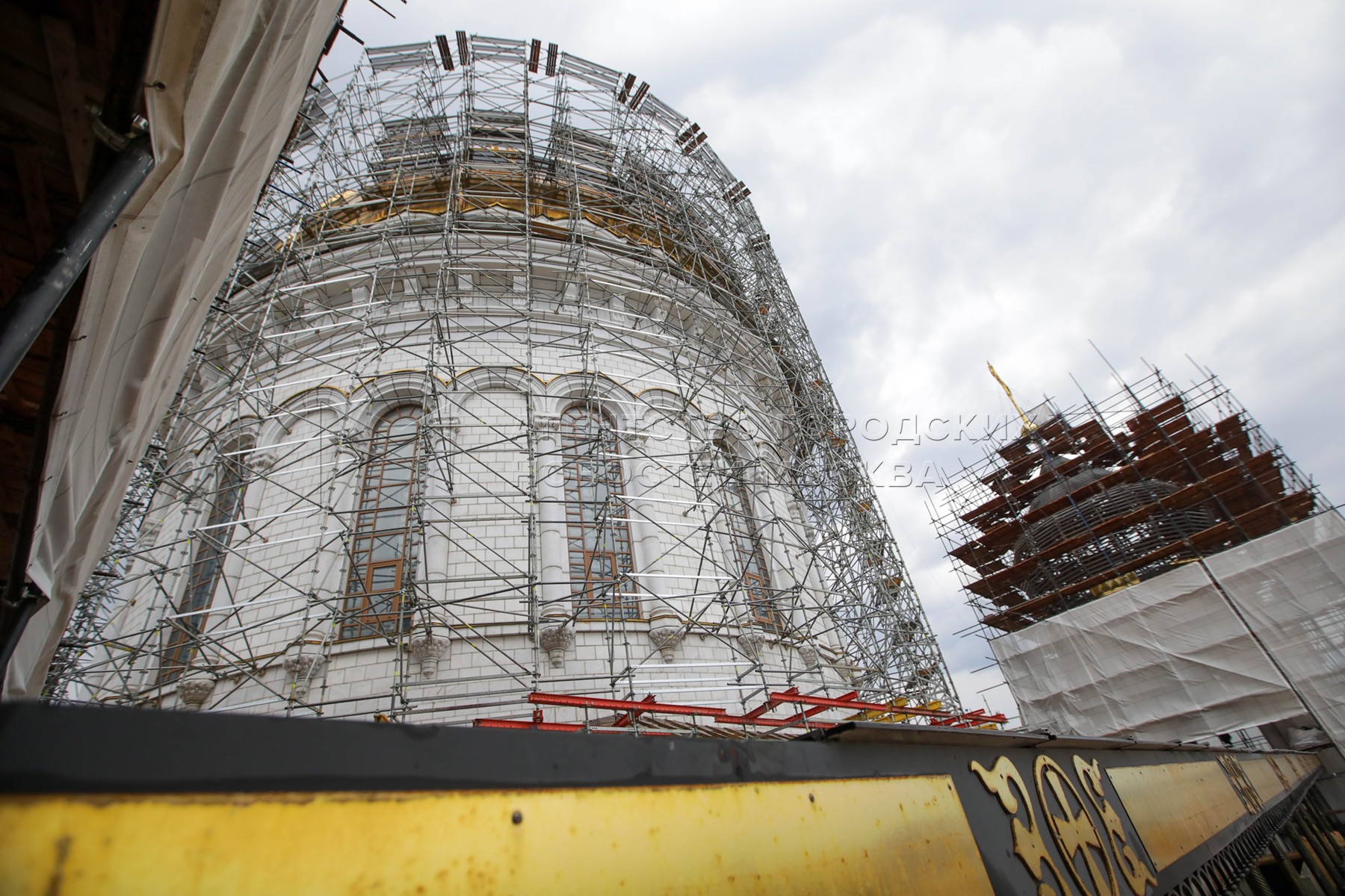 Реставрация куполов четырех звонниц храма Христа Спасителя в центре столицы.