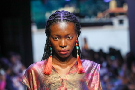 Дизайнер из Бразилии Маяри Джубини на показе бренда Artemisi (Бразилия). Московс...