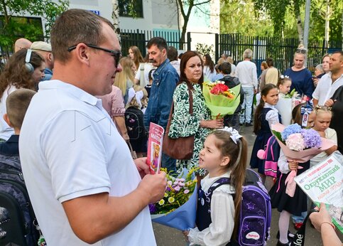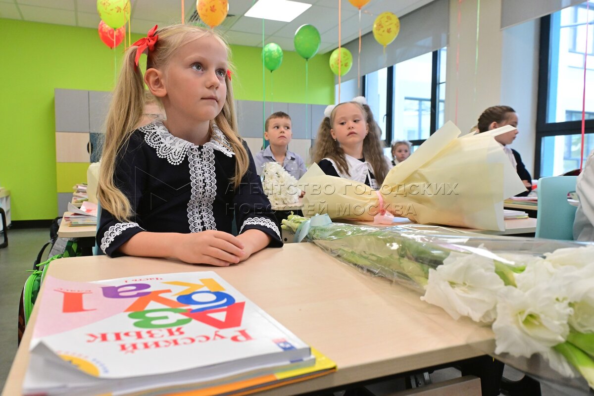 Праздничная линейка для первоклассников в образовательном центре «Протон» на Филевском бульваре.