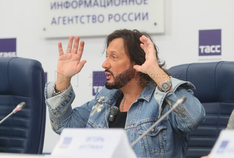 Певец Филипп Киркоров. Пресс-конференция народной артистки России Ларисы Долиной к ее юбилейному концерту «В кругу друзей» 10 сентября в Государственном Кремлевском дворце.