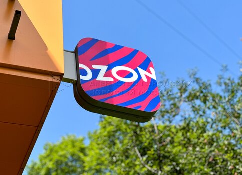 Вывеска пункта выдачи заказов (ПВЗ) Озон в Москве.