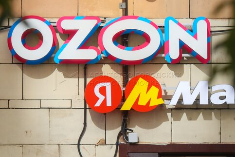 Вывески пунктов выдачи заказов (ПВЗ) Озон и Яндекс Маркет в Москве.