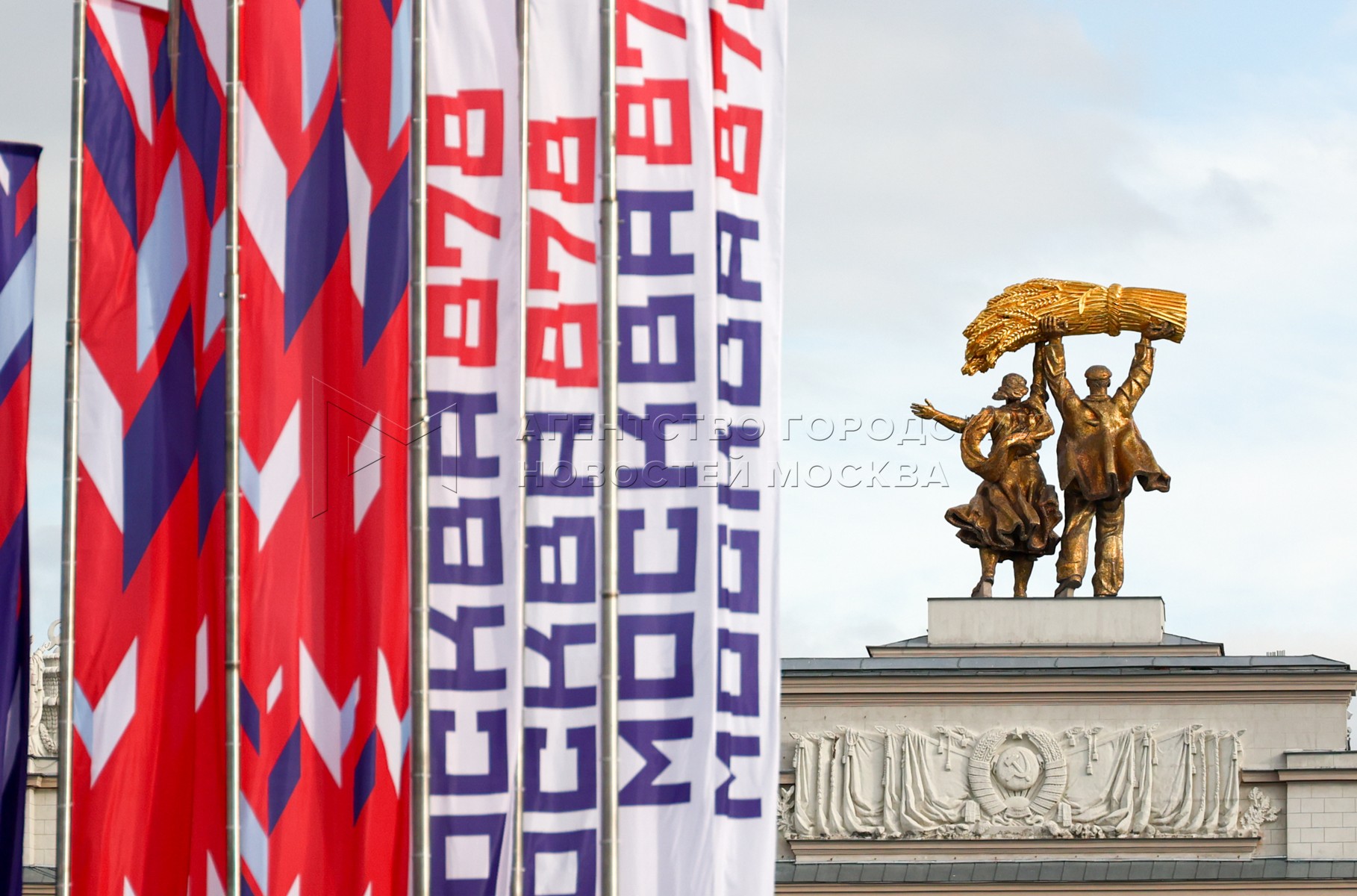 Оформление столичных улиц к празднованию 878-летия Москвы.