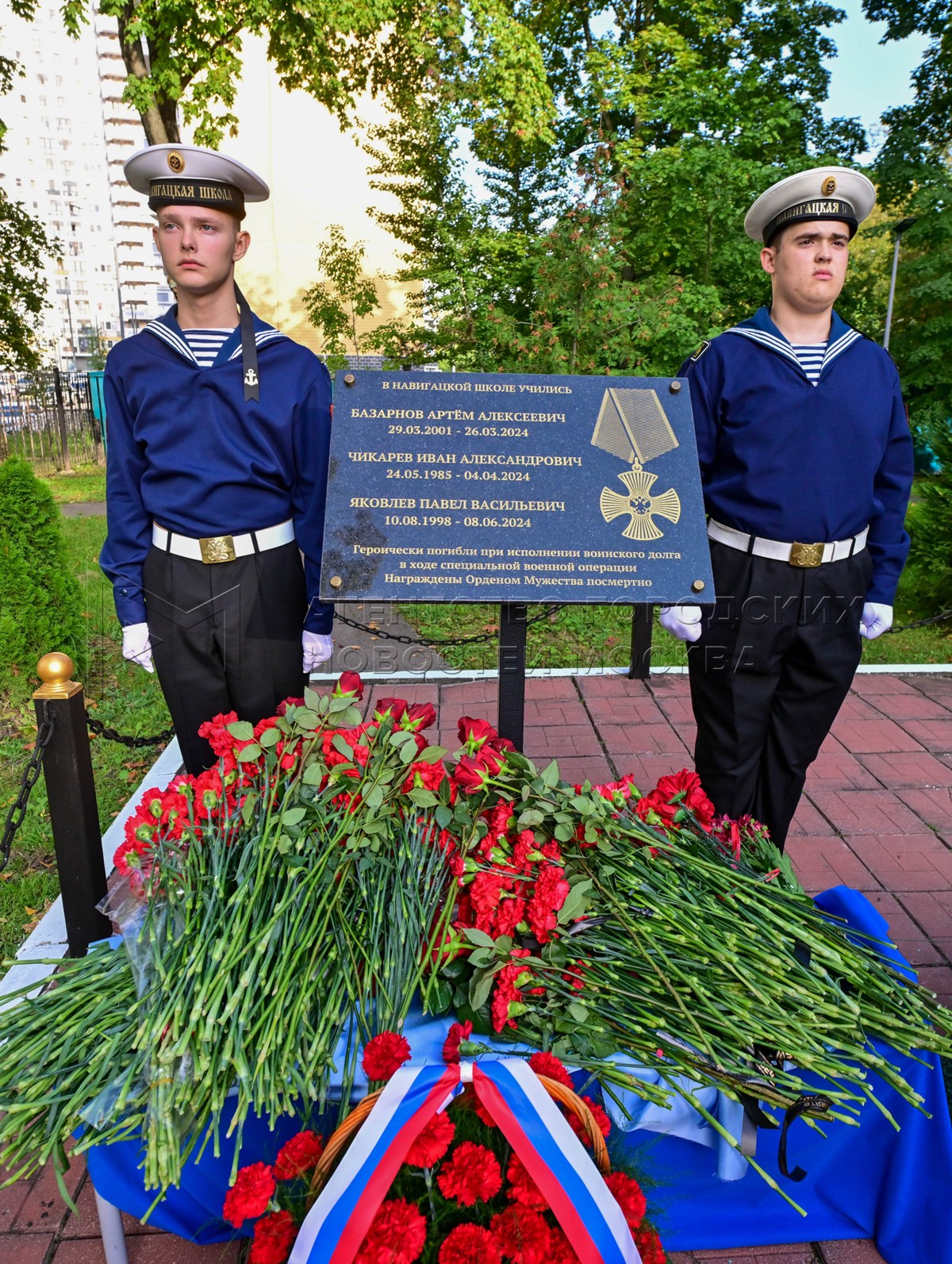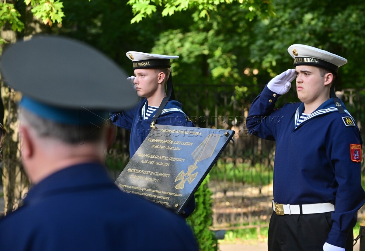 Церемония открытия мемориальной доски в память о героях-выпускниках Первого Моско...