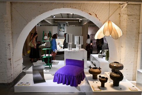 Директор Музея Москвы Анна Трапкова (слева). Предпоказ ярмарки молодого современн...
