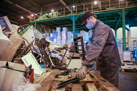 Работа завода по переработке б/у электроники и электротехники «Экотехпром» проекта «Экоточки Москвы».