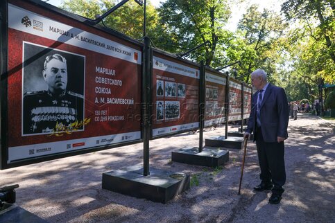 • Заголовок: Открытие фотовыставки на Гоголевском бульваре к 130-летию со дня рождения маршала Василевского