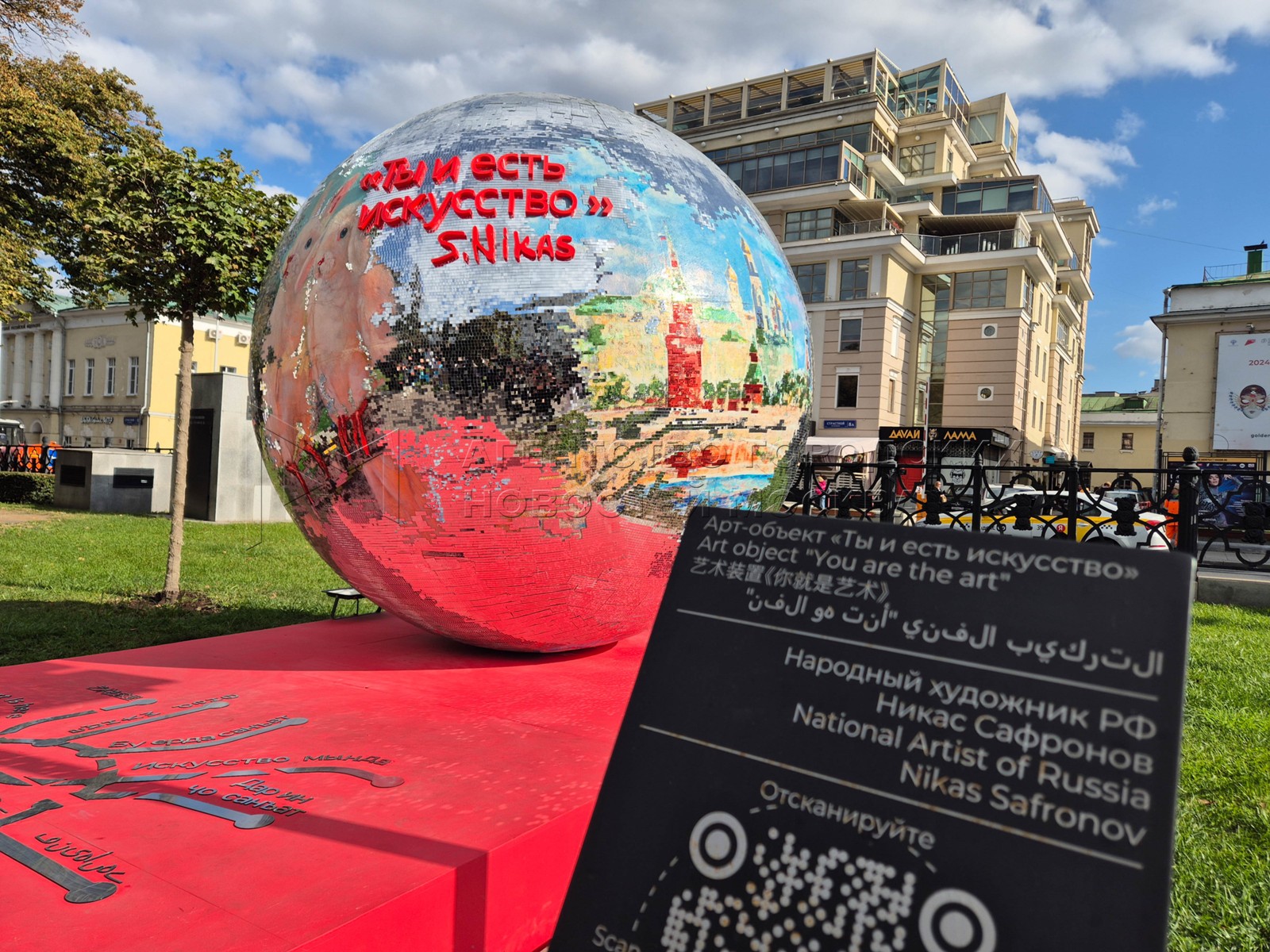 Арт-объект «Ты и есть искусство» с языками стран БРИКС и ШОС – подарок ко Дню города в рамках проекта «Лето в Москве» от художника Никаса Сафронова на Страстном бульваре.