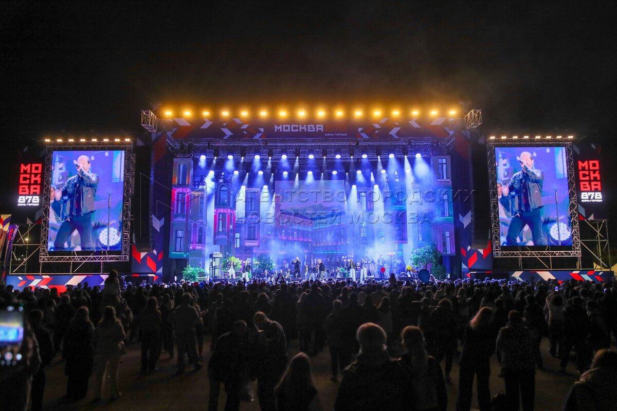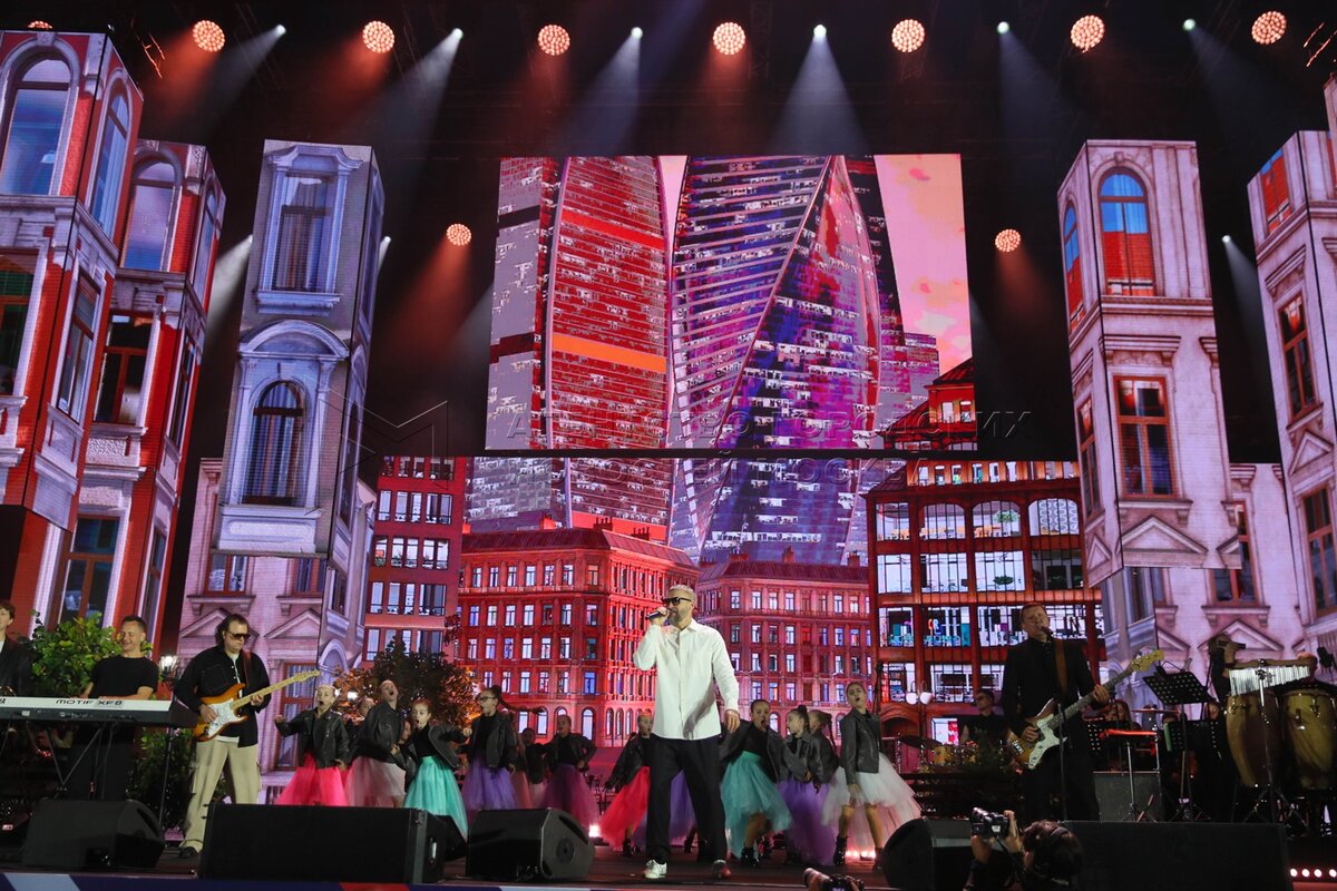 • Описание: Концерт-мюзикл «А я иду, шагаю по Москве» на центральной площади кинопарка «Москино» в День города.