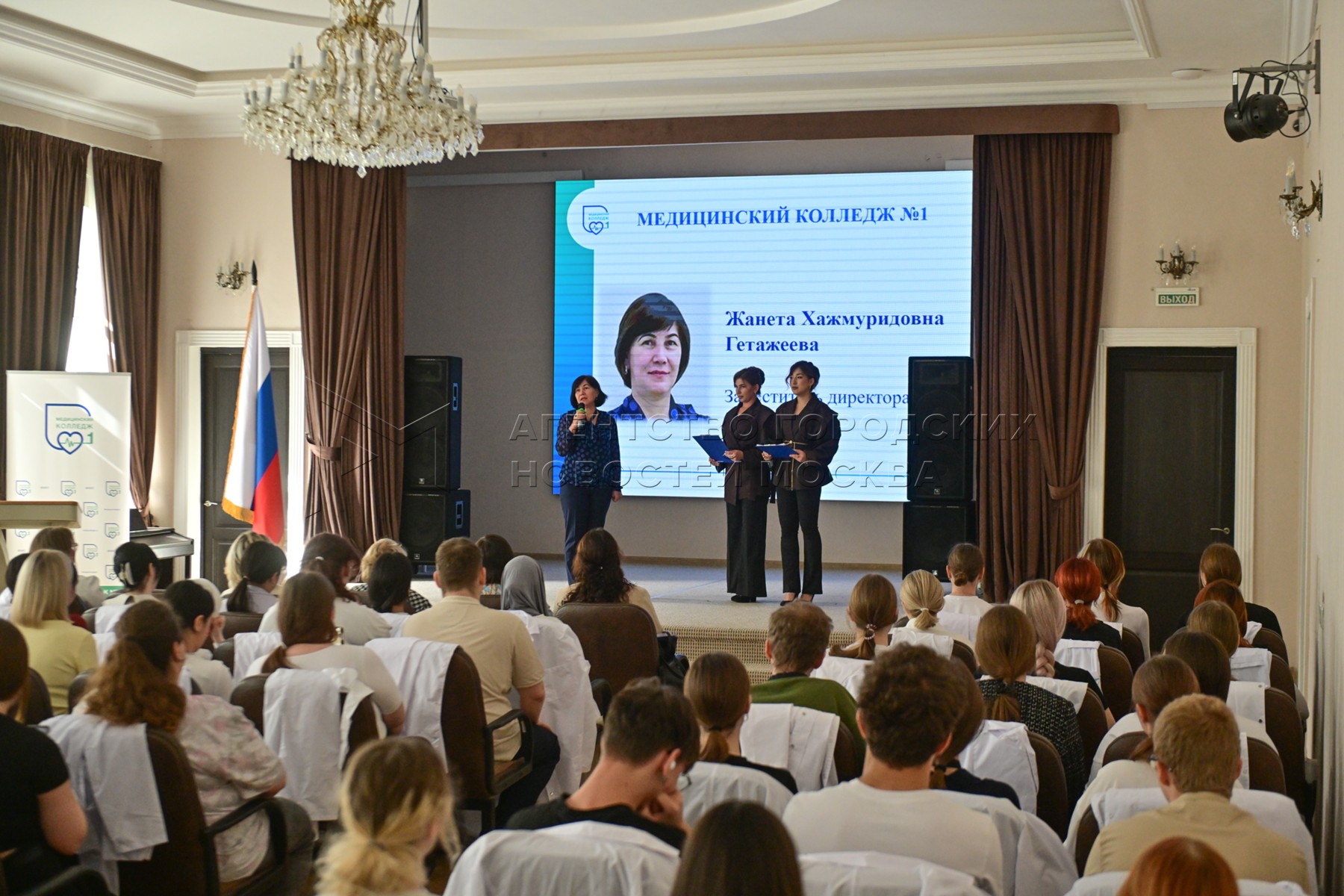 Праздник для первокурсников «День белого халата» в медицинском колледже №1 на Ленинском проспекте.