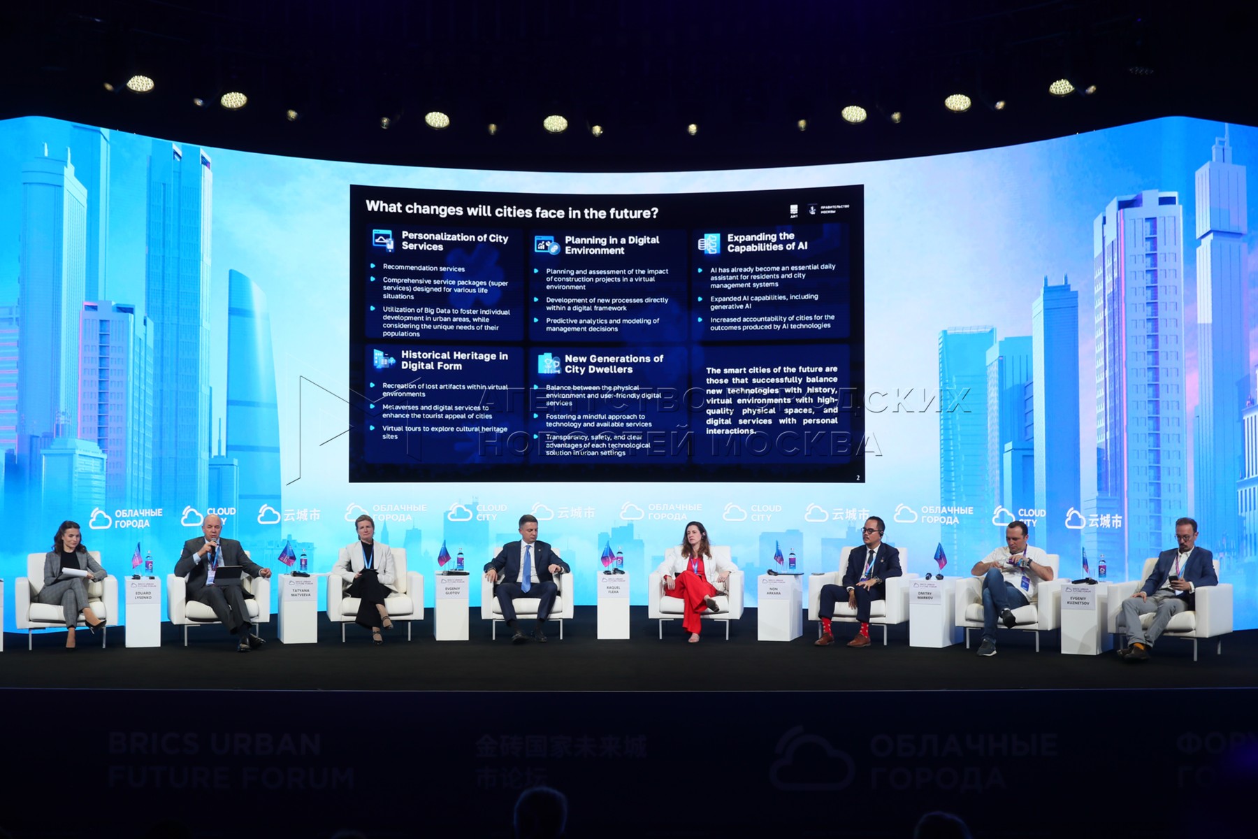 - Описание: Третий форум БРИКС «Облачные города» в московском концертном зале «Зарядье», посвященный применению роботизированных технологий и искусственного интеллекта в работе городских служб.