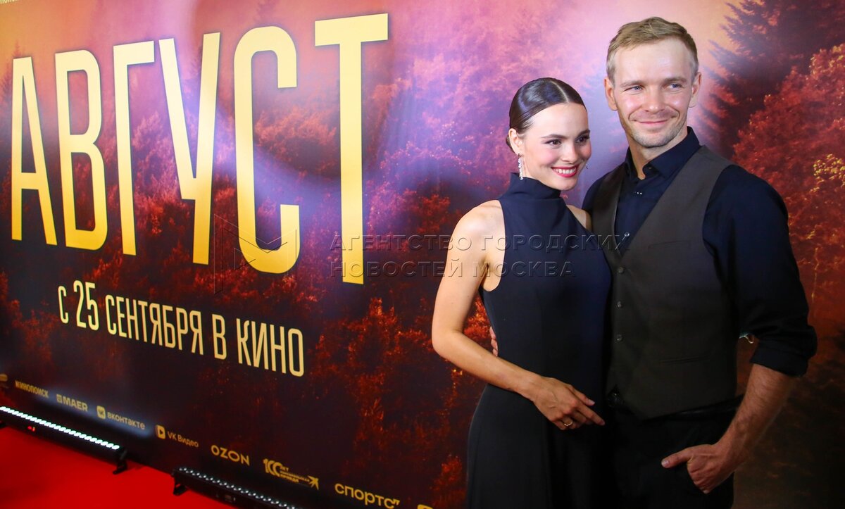 Актеры и супруги Ангелина Стречина и Илья Малаков. Премьера фильма «Август» в кин...