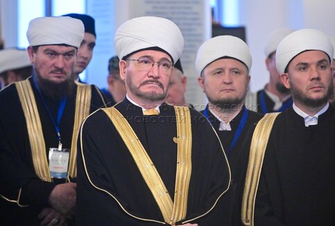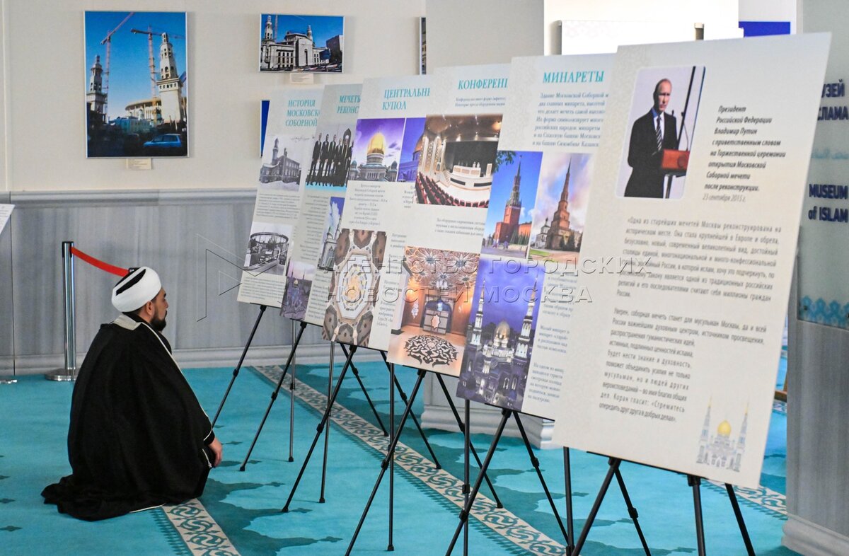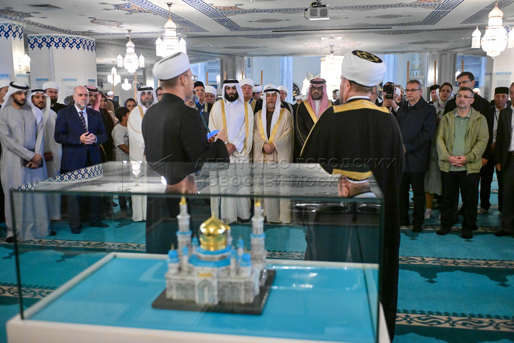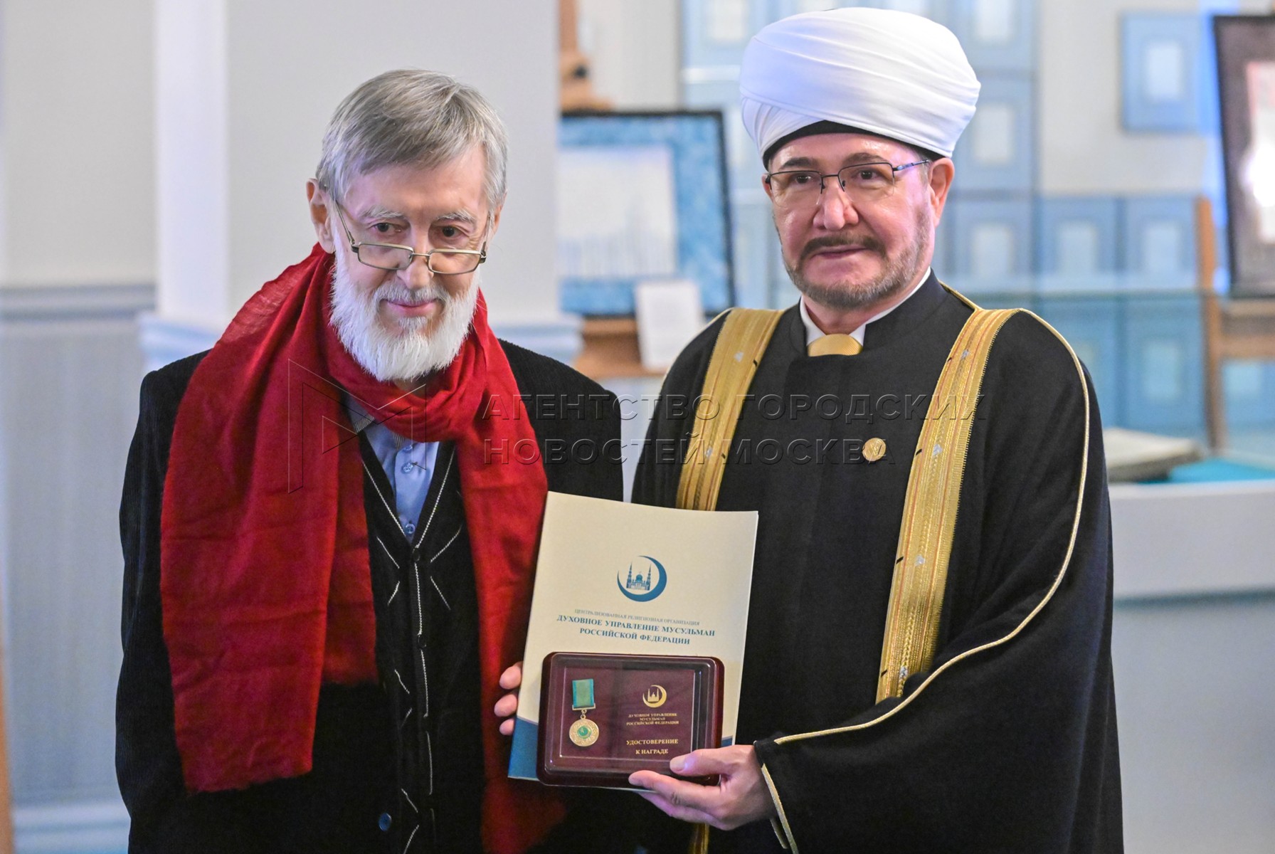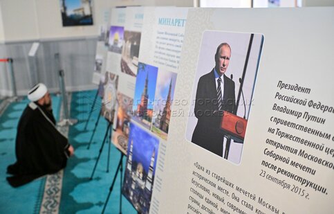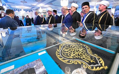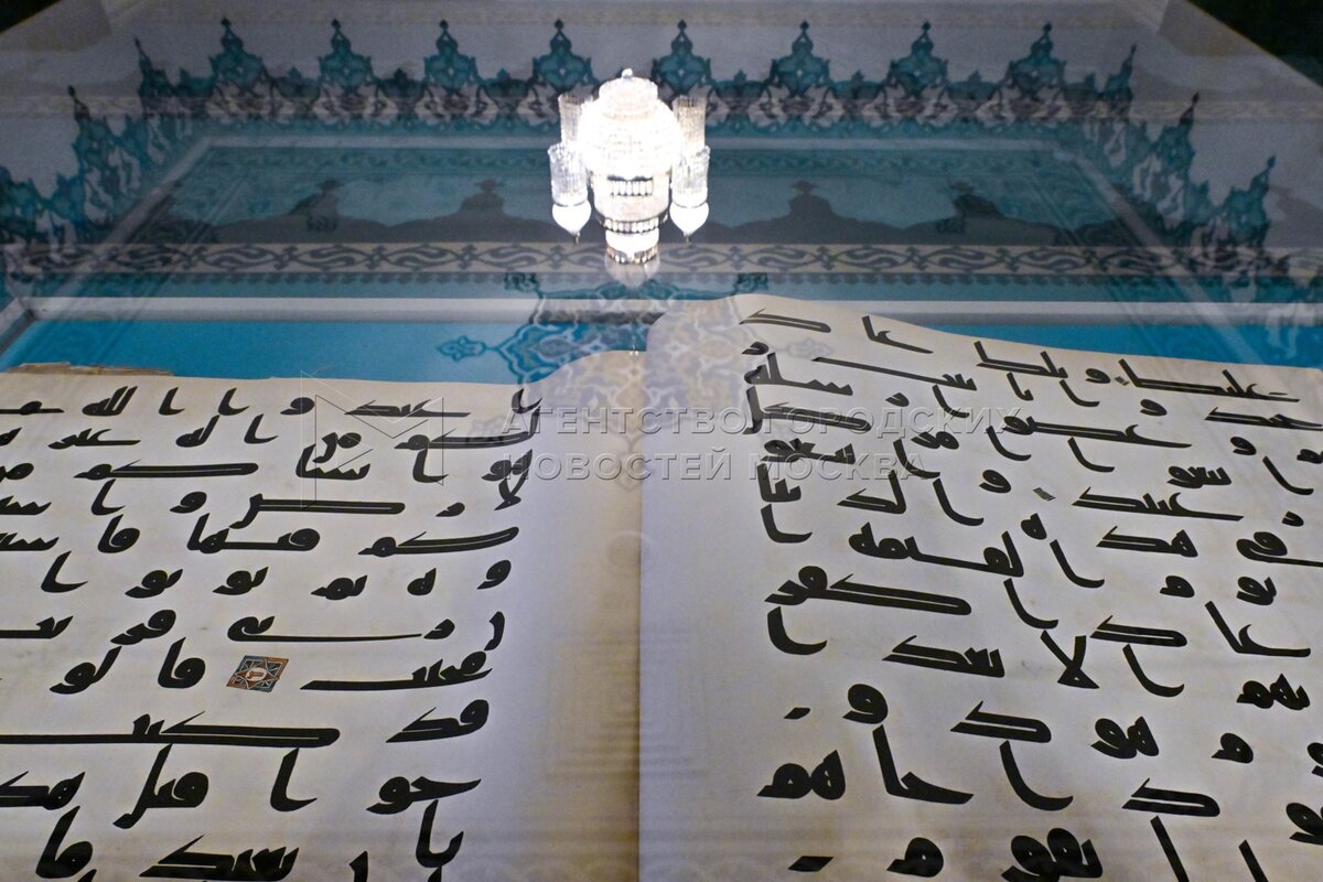 - Описание: Председатель Совета муфтиев России и Духовного управления мусульман России, муфтий Равиль Гайнутдин (слева по центру). Открытие выставки «С небесной книги список дан…» к 200-летию поэтического цикла «Подражания Корану» Александра Пушкина в Музее ислама на территории Московской Соборной мечети.