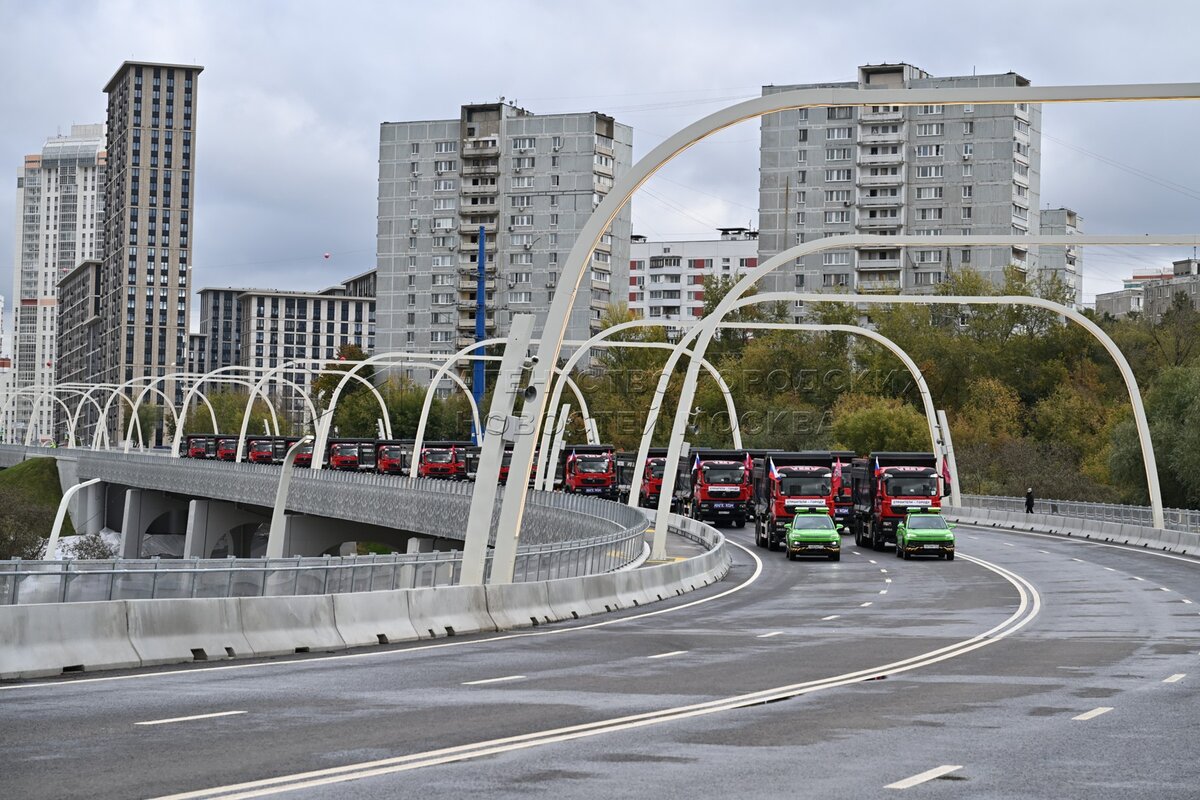 Открытие движения по новой улично-дорожной сети кинематографического квартала в районе Раменки, включая новый участок ул. Мосфильмовская и два моста через реку Раменку. Фото: Владимир Новиков, пресс-служба мэра и правительства Москвы.