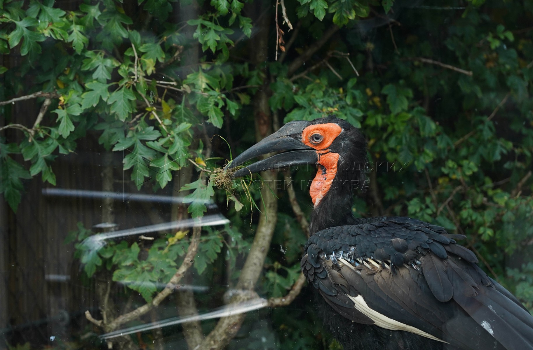 • Описание: Кафрский рогатый ворон в вольере Московского зоопарка.