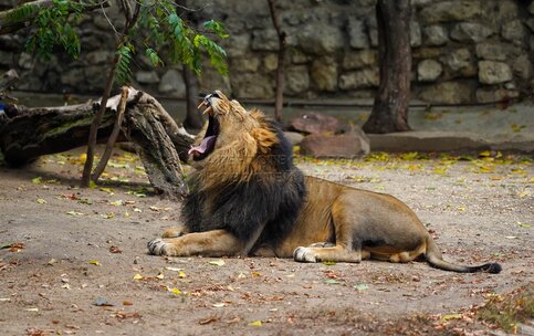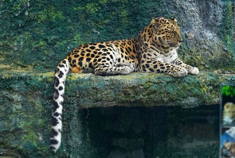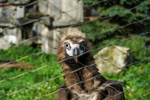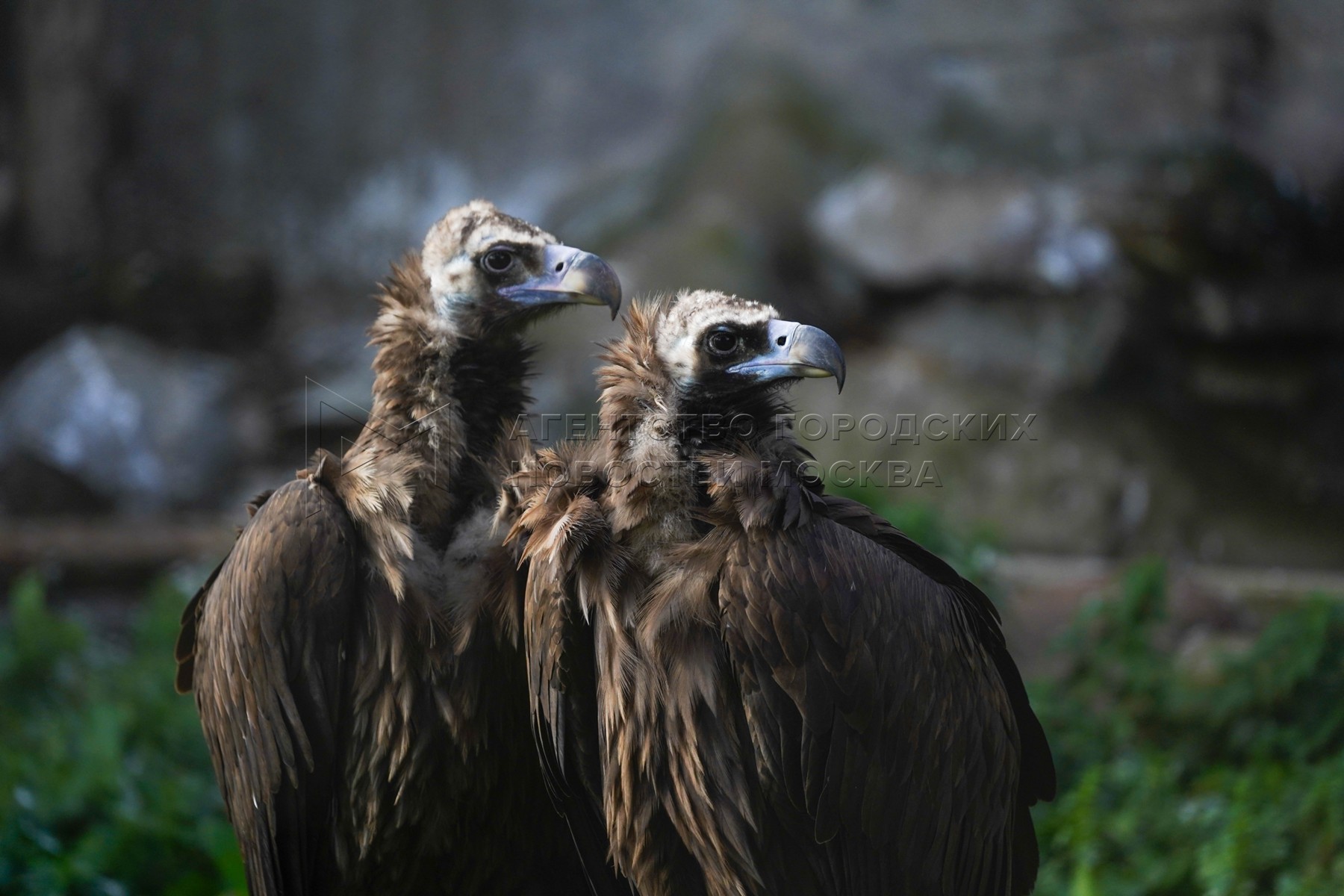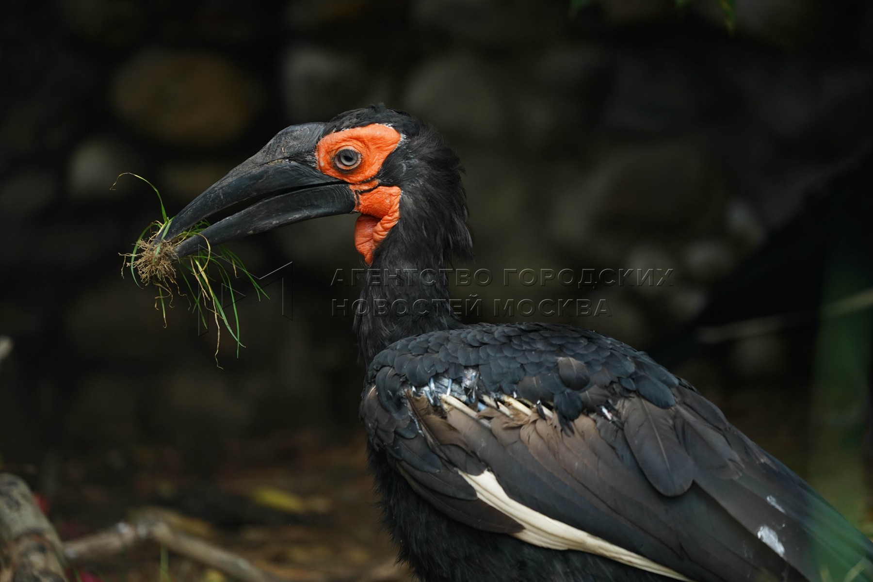 Кафрский рогатый ворон в вольере Московского зоопарка.