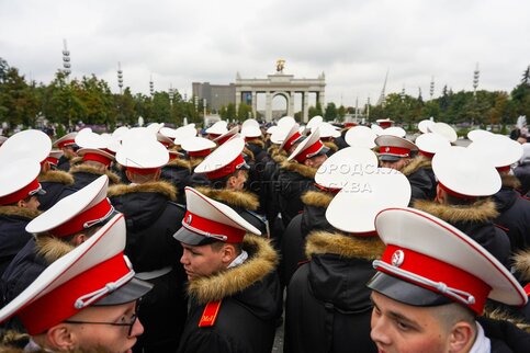 Воспитанники Первого Московского кадетского корпуса во время торжественной церемо...