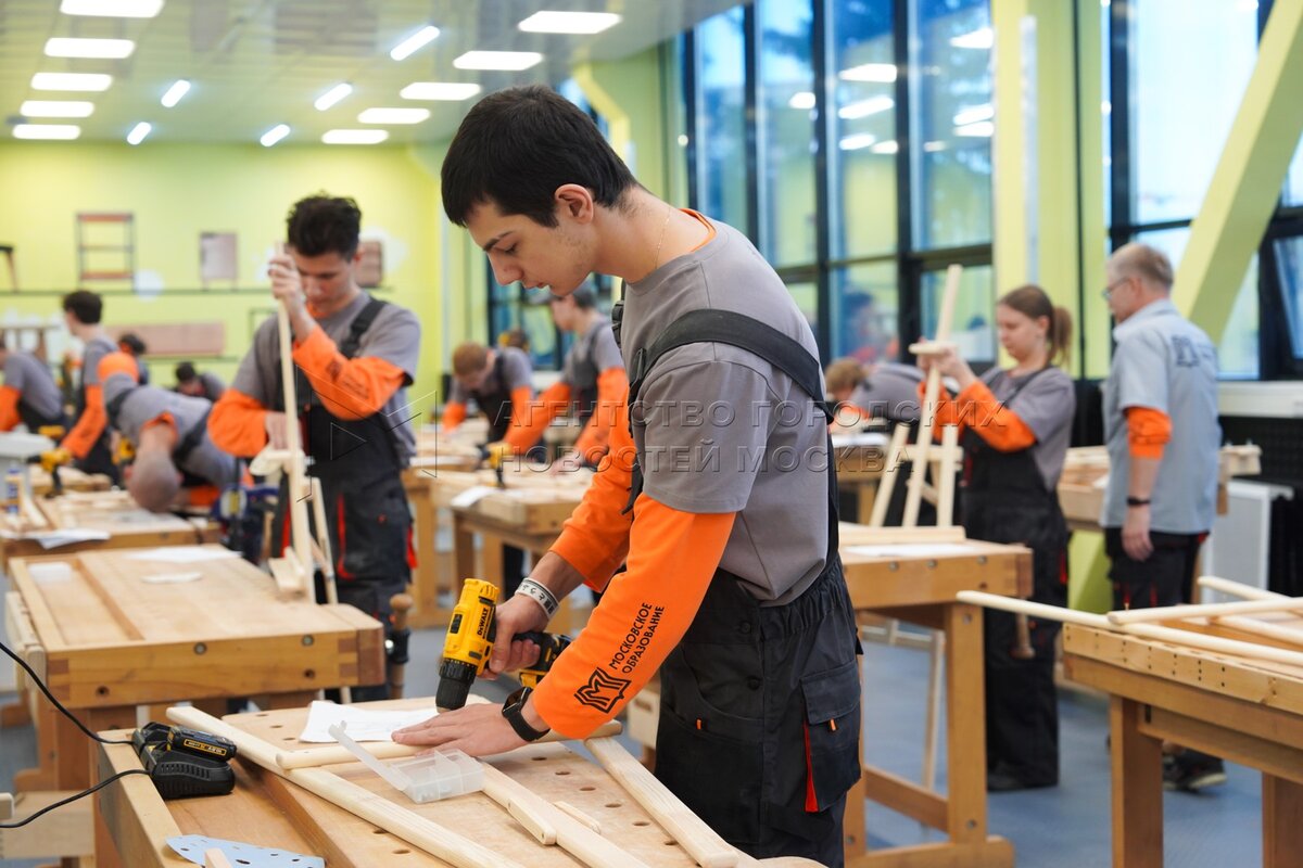 Студенты во время занятий по столярному и плотницкому делу. Колледж «26 КАДР» на ...