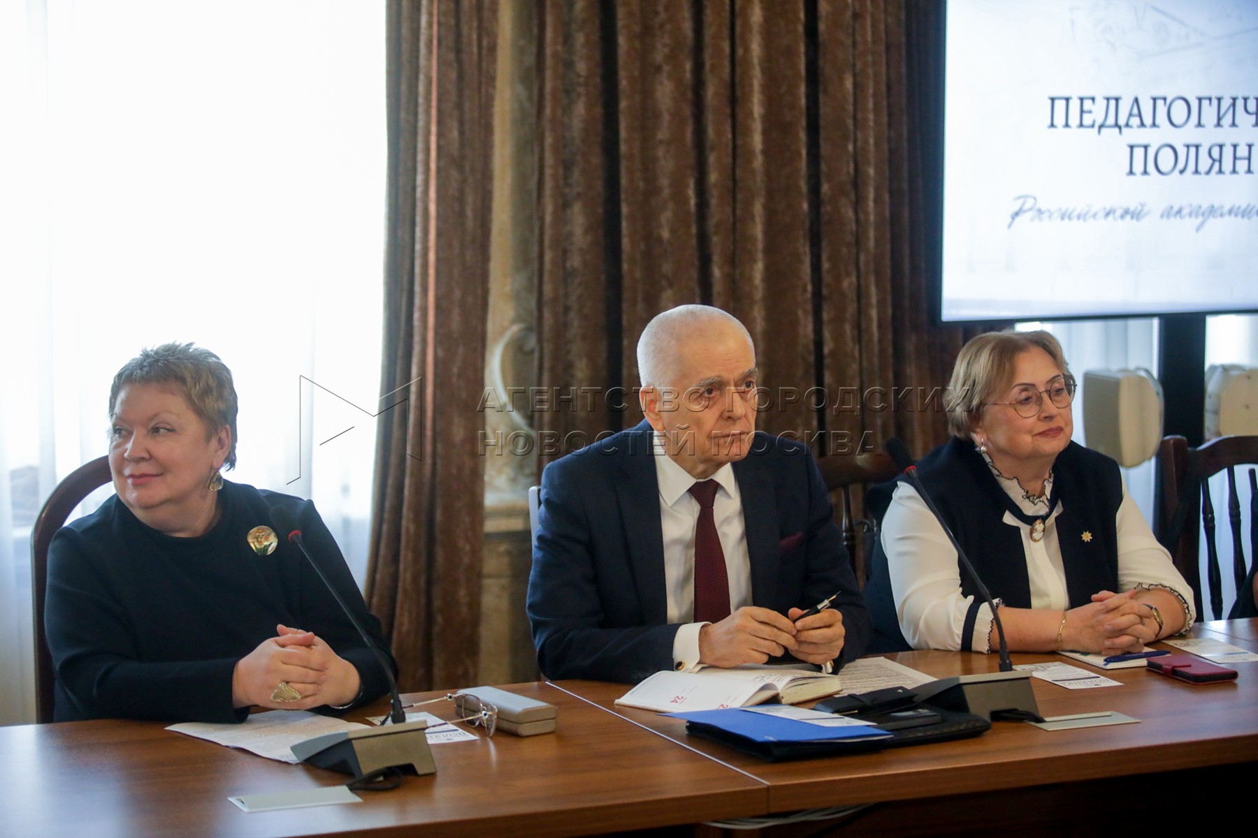 - Описание: Президент РАО, академик РАО Ольга Васильева, академик РАН, заместитель президента РАО Геннадий Онищенко и заместитель председателя общероссийского профсоюза образования Татьяна Куприянова (слева направо). Открытие проекта «Педагогическая Полянка РАО» в здании президиума Российской академии образования (РАО).