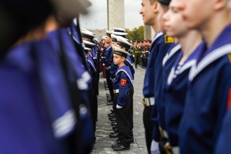 Воспитанники Первого Московского кадетского корпуса во время торжественной церем...