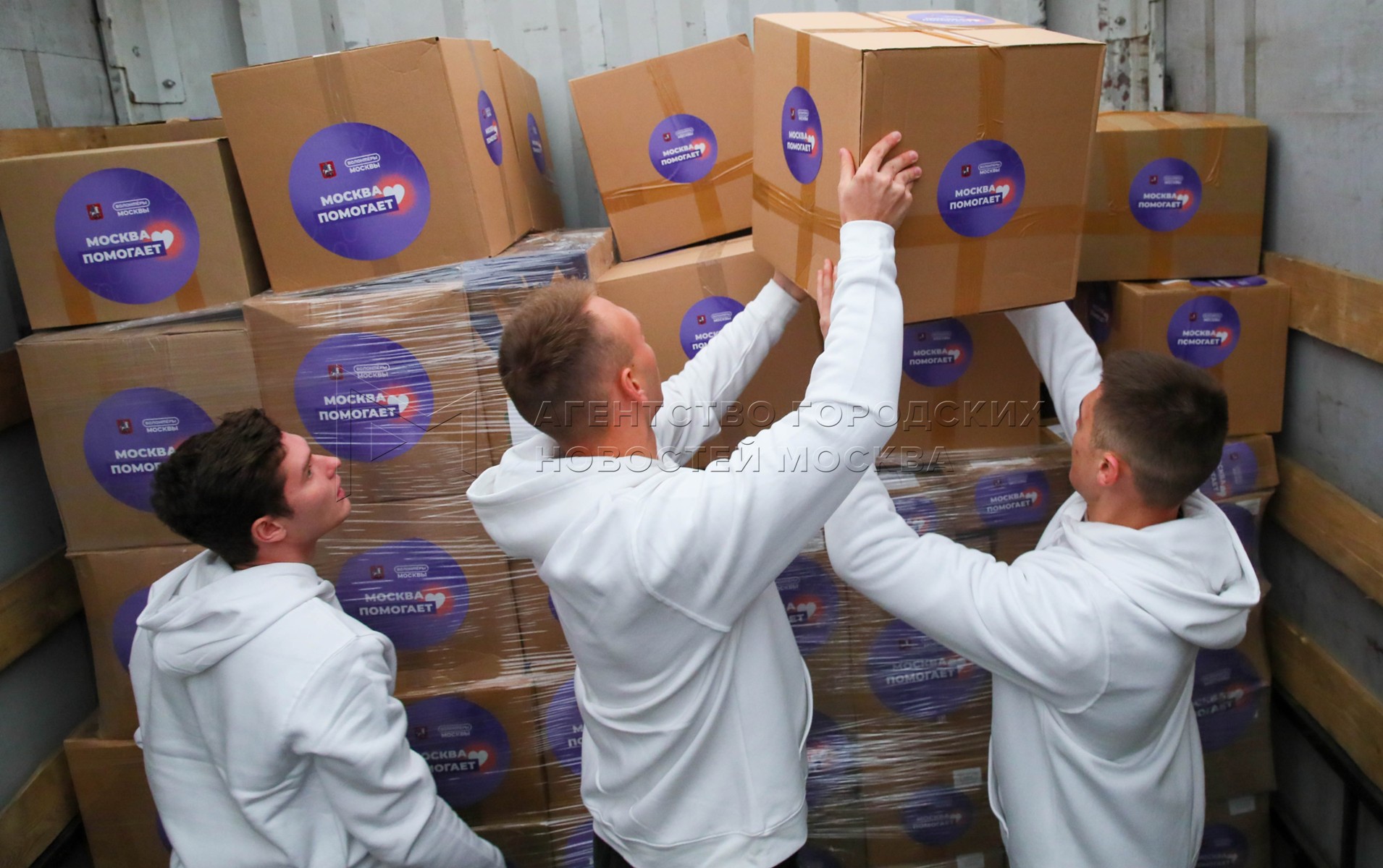 Волонтеры отгружают новую партию гуманитарного груза «Москва помогает» жителям и...