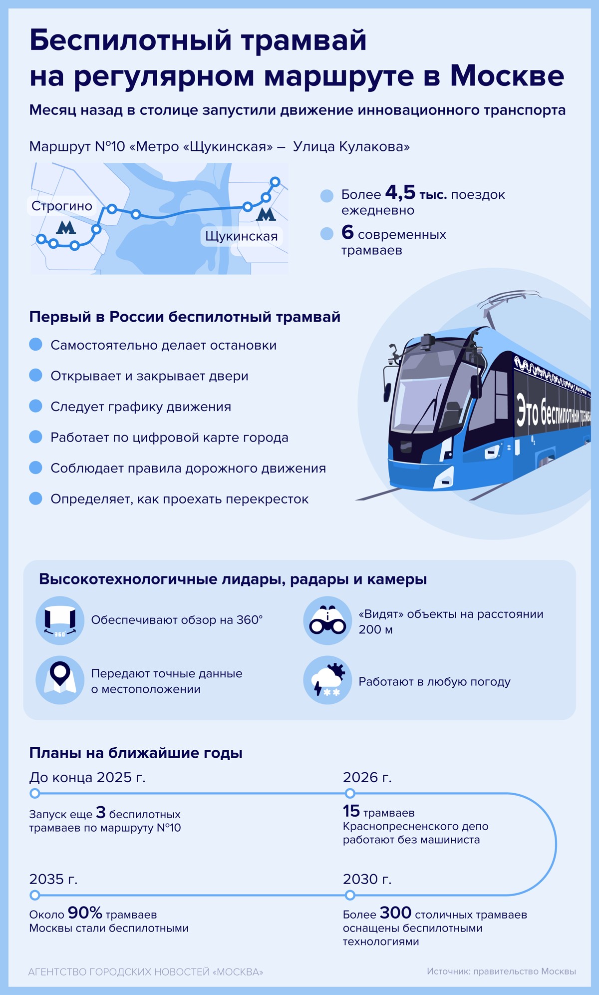 • Заголовок: Беспилотный трамвай на регулярном маршруте в Москве