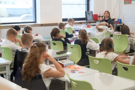Празднование Дня учителя в школе №2094 на Новомихайловском шоссе.