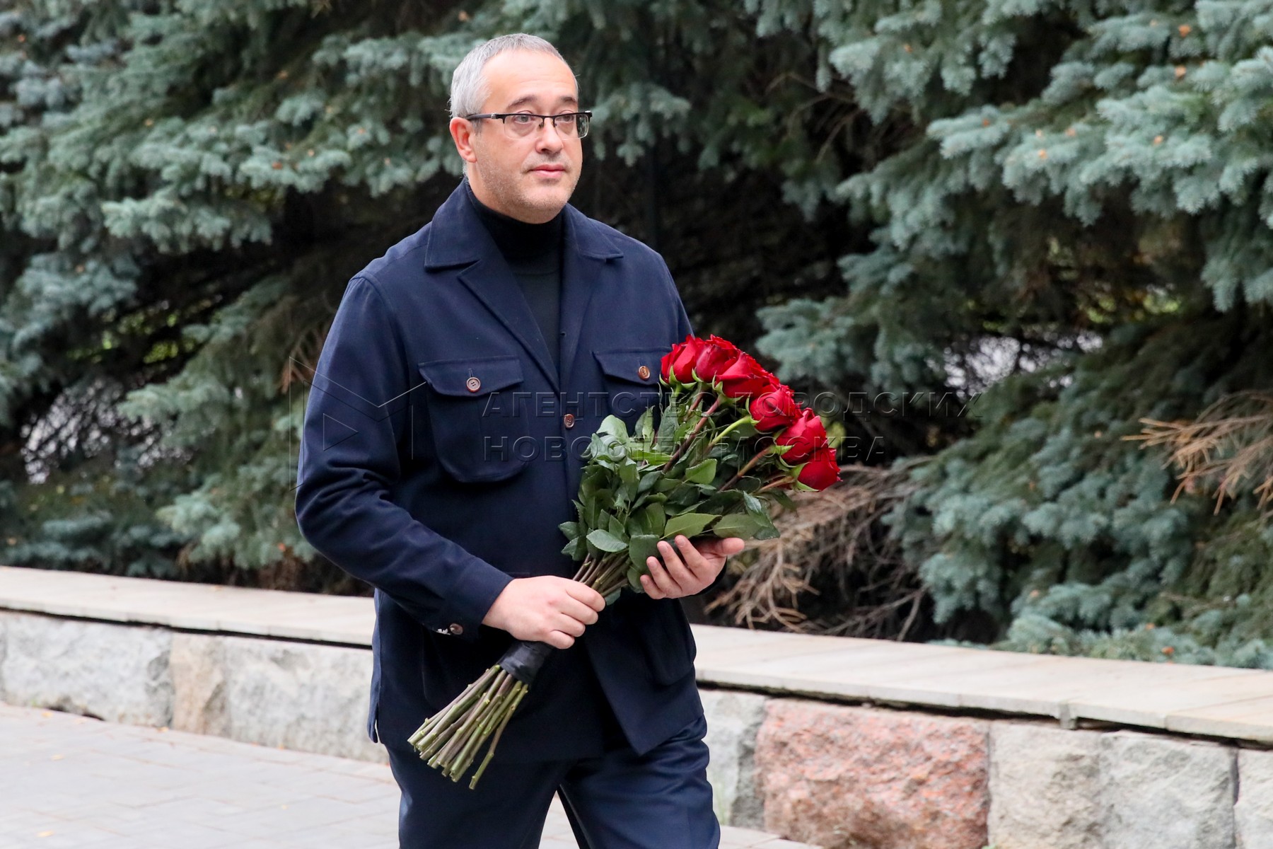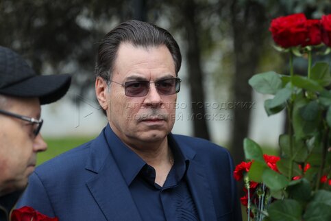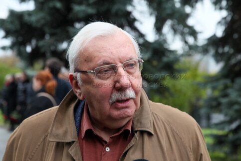 - Описание: Генеральный директор АО «Редакция газеты «Вечерняя Москва» Георгий Рудницкий во время прощания с главным редактором газеты «Вечерняя Москва» Александром Куприяновым на Троекуровском кладбище.
