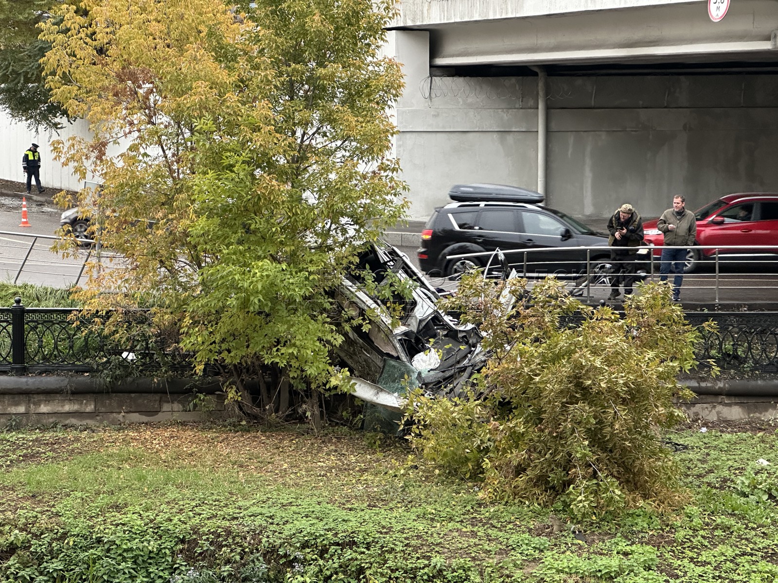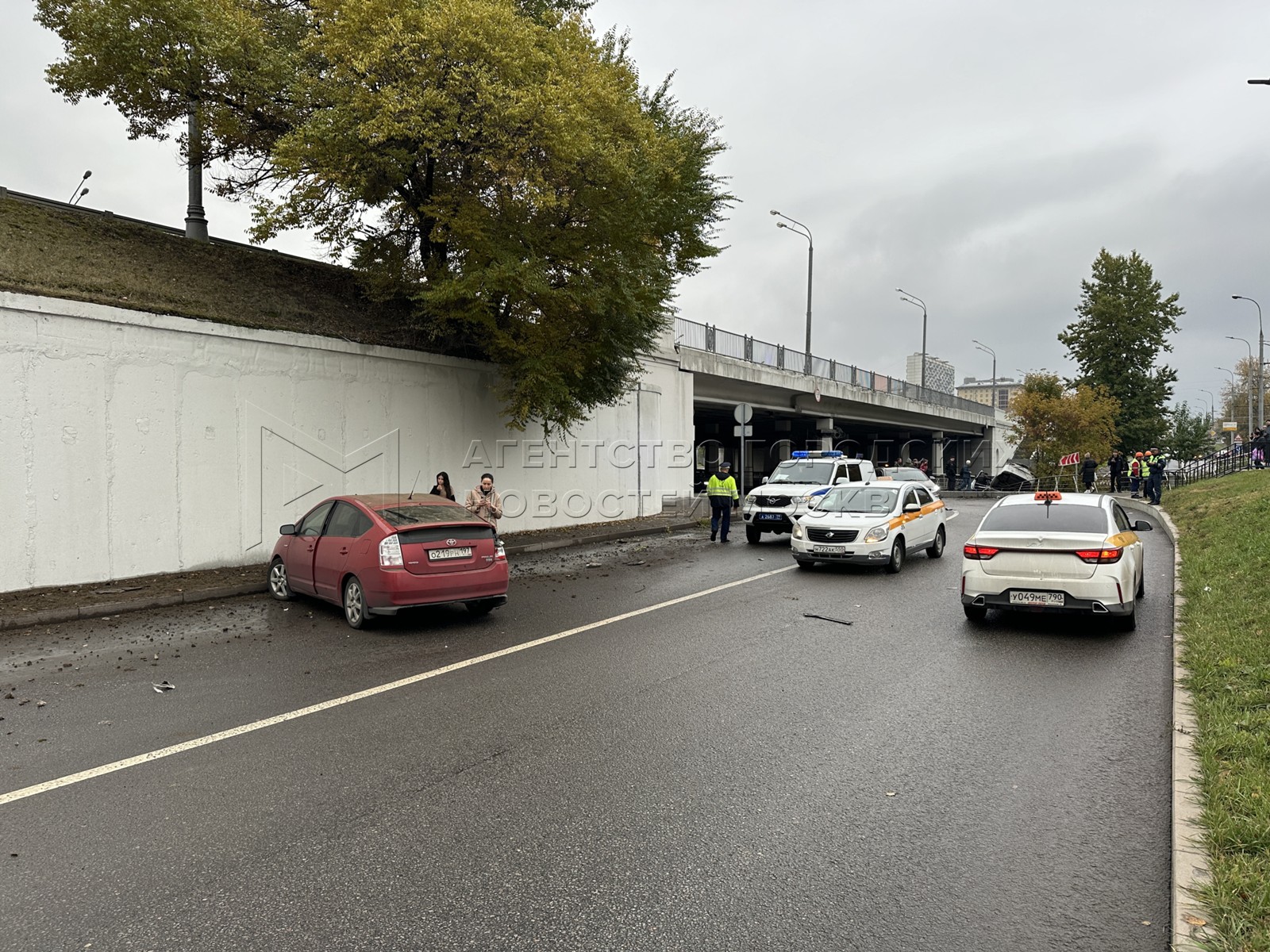Последствия ДТП с участием двух автомобилей на проспекте Мира, рядом с мостом и н...