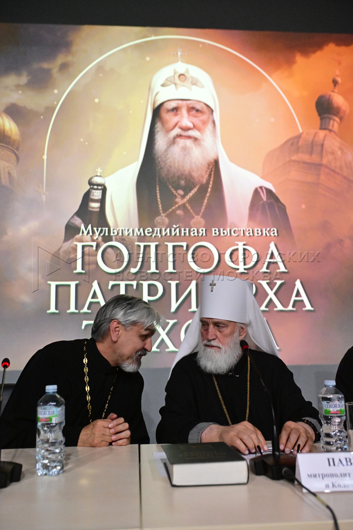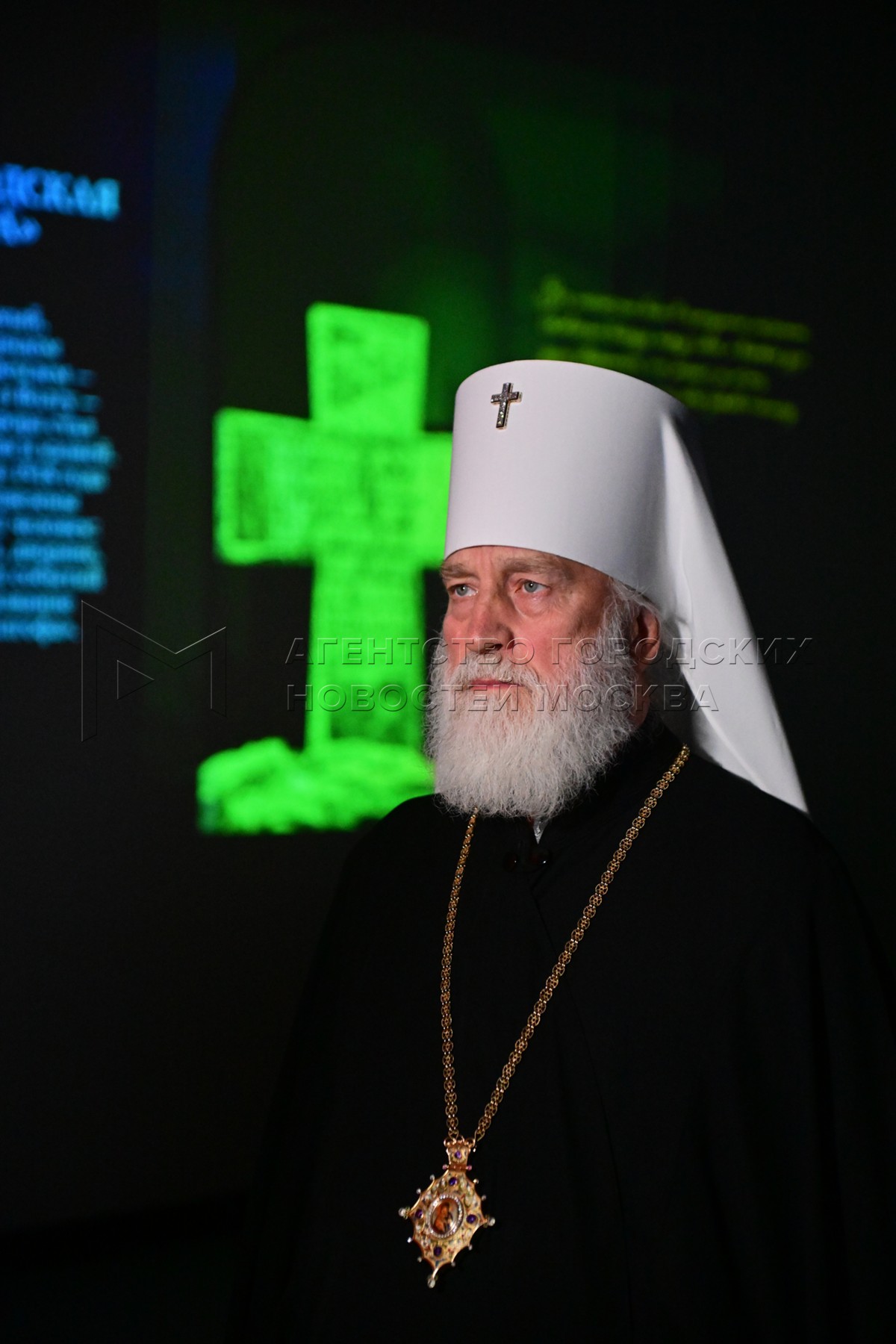 Сопредседатель оргкомитета празднования 100-летия со дня кончины патриарха Тихона митрополит Крутицкий и Коломенский Павел (Пономарев). Открытие мультимедийной выставки «Голгофа патриарха Тихона» в павильоне №57 «Россия – моя история» на ВДНХ.