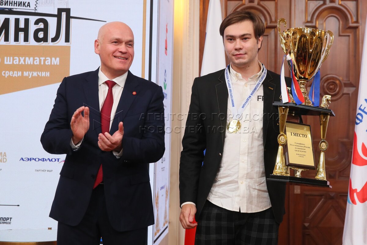 Чемпион России Арсений Нестеров (справа) и президент Федерации шахмат России Андр...