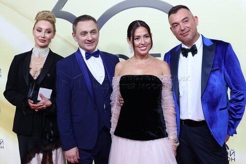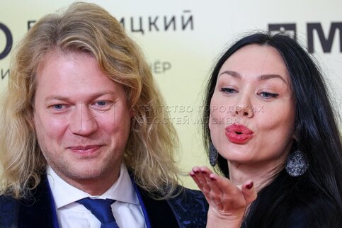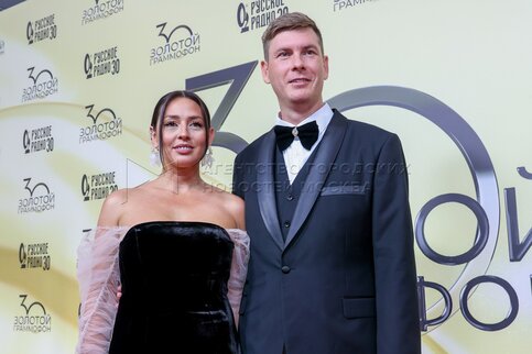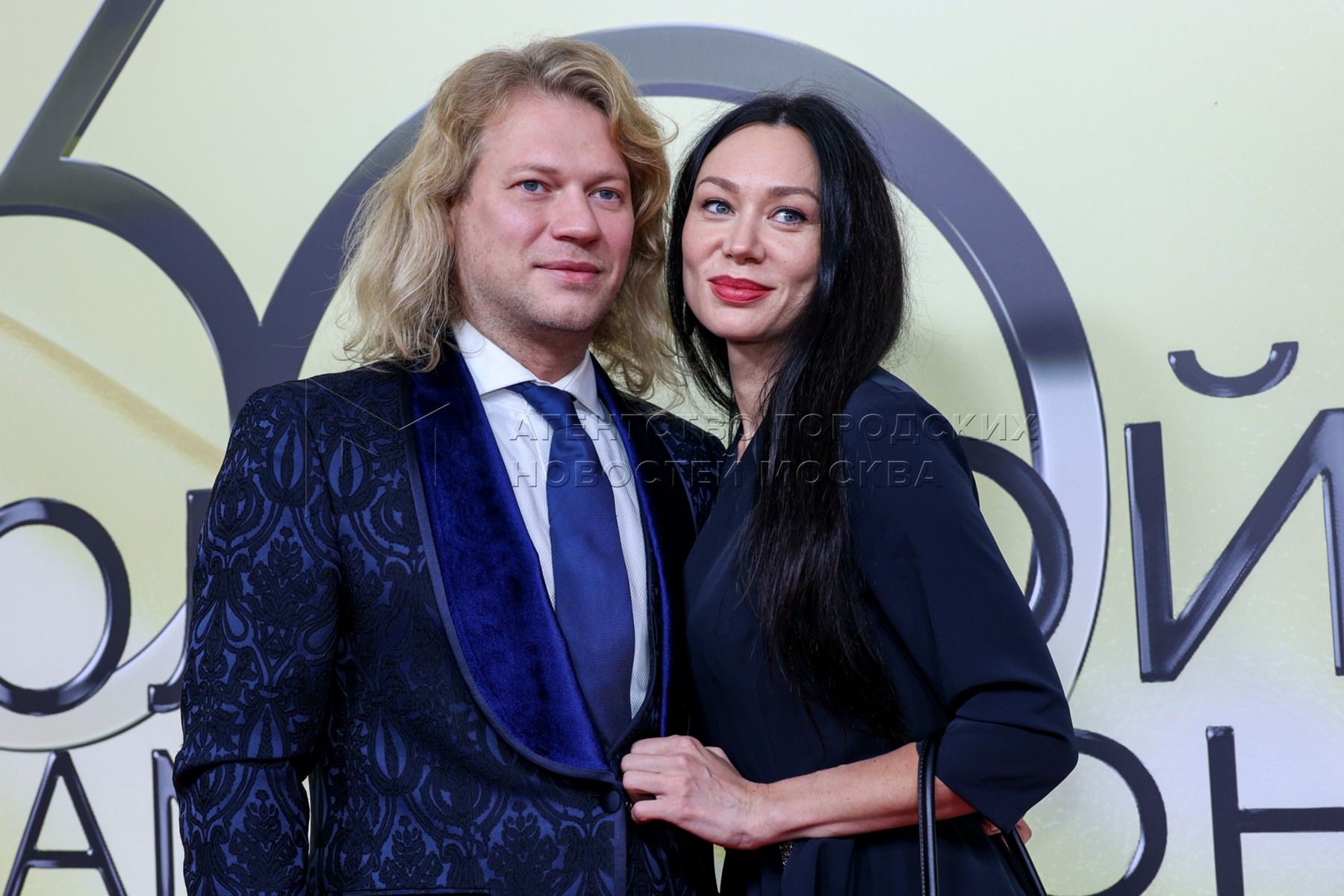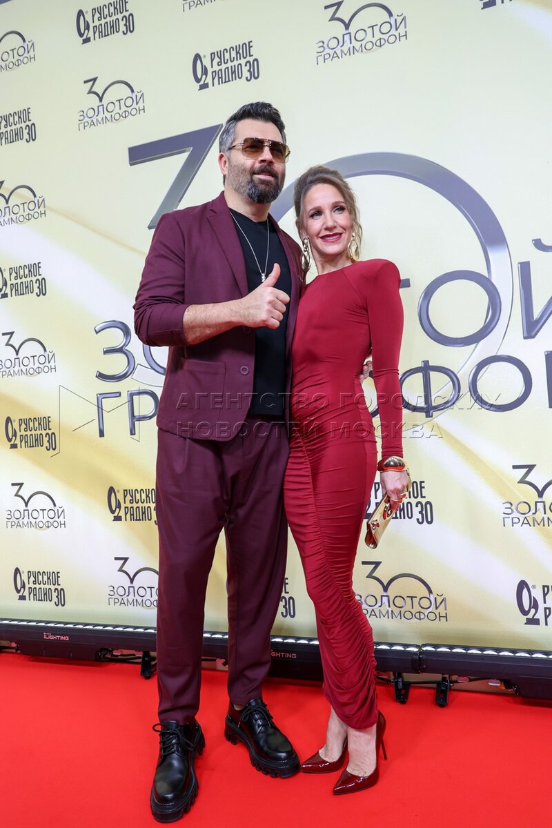 Певец Роман Архипов с супругой певицей Алисой Огородниковой на красной дорожке юб...