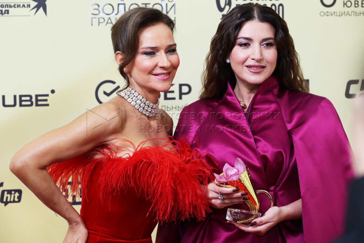 Певицы Ева Власова (слева) и Алсу на красной дорожке юбилейной 30-й церемонии вру...