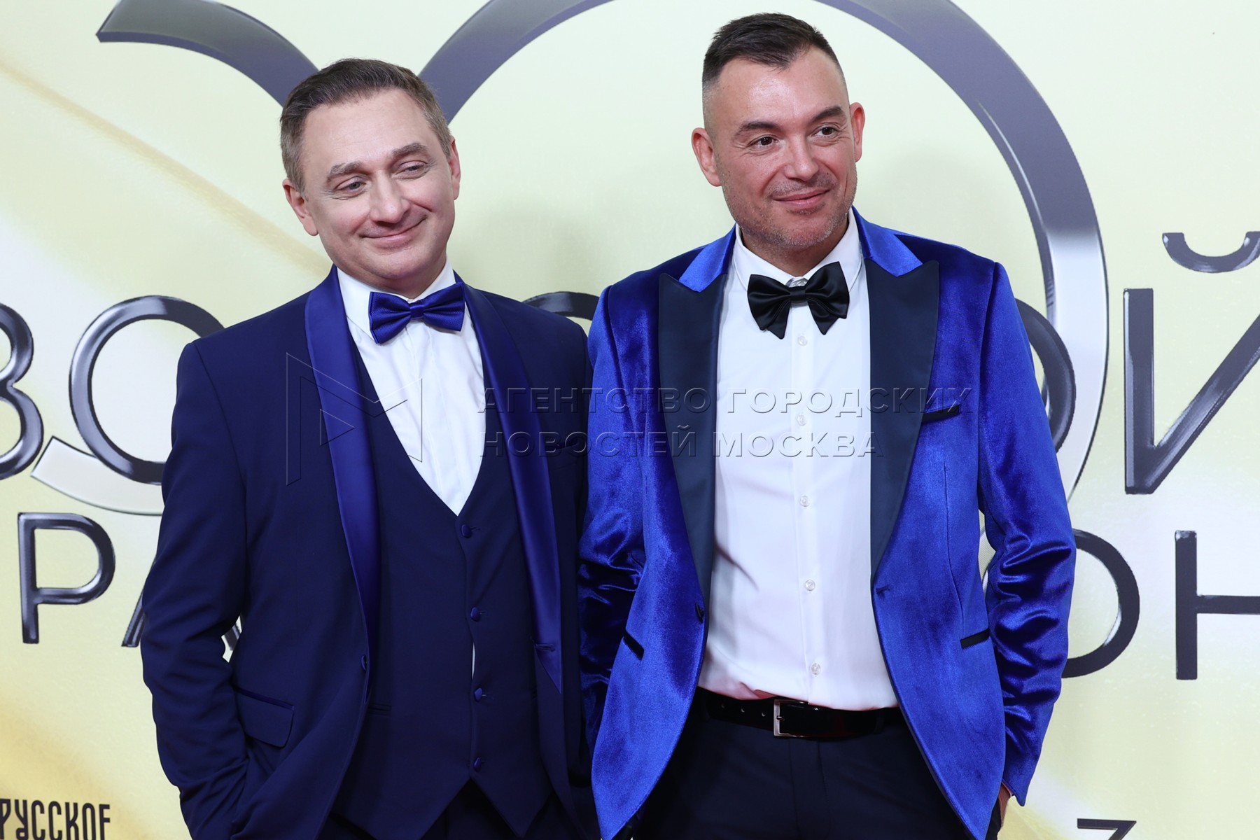 Радиоведущие Александр Пряников (слева) и Иван Соловьев на красной дорожке юбилей...