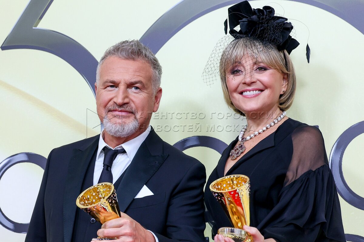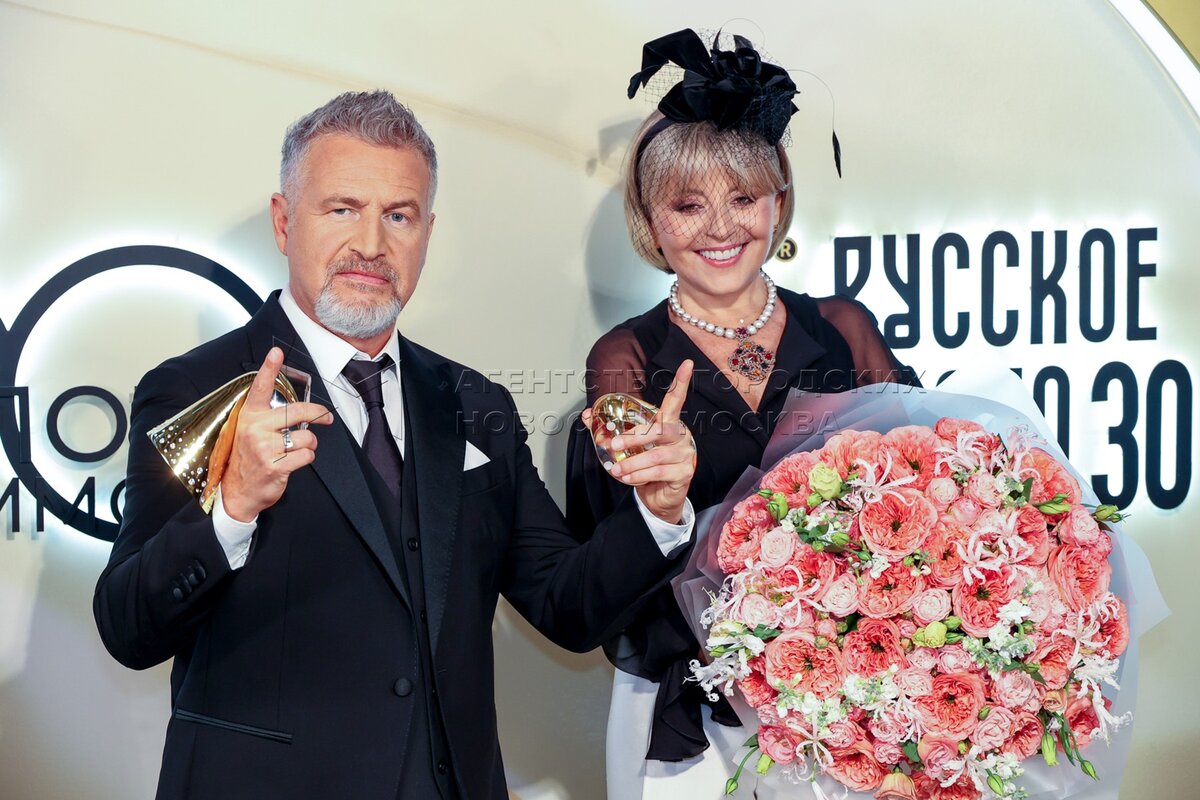 Певцы Леонид Агутин и Анжелика Варум на красной дорожке юбилейной 30-й церемонии ...