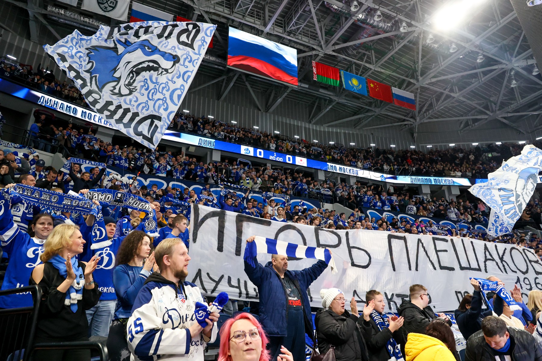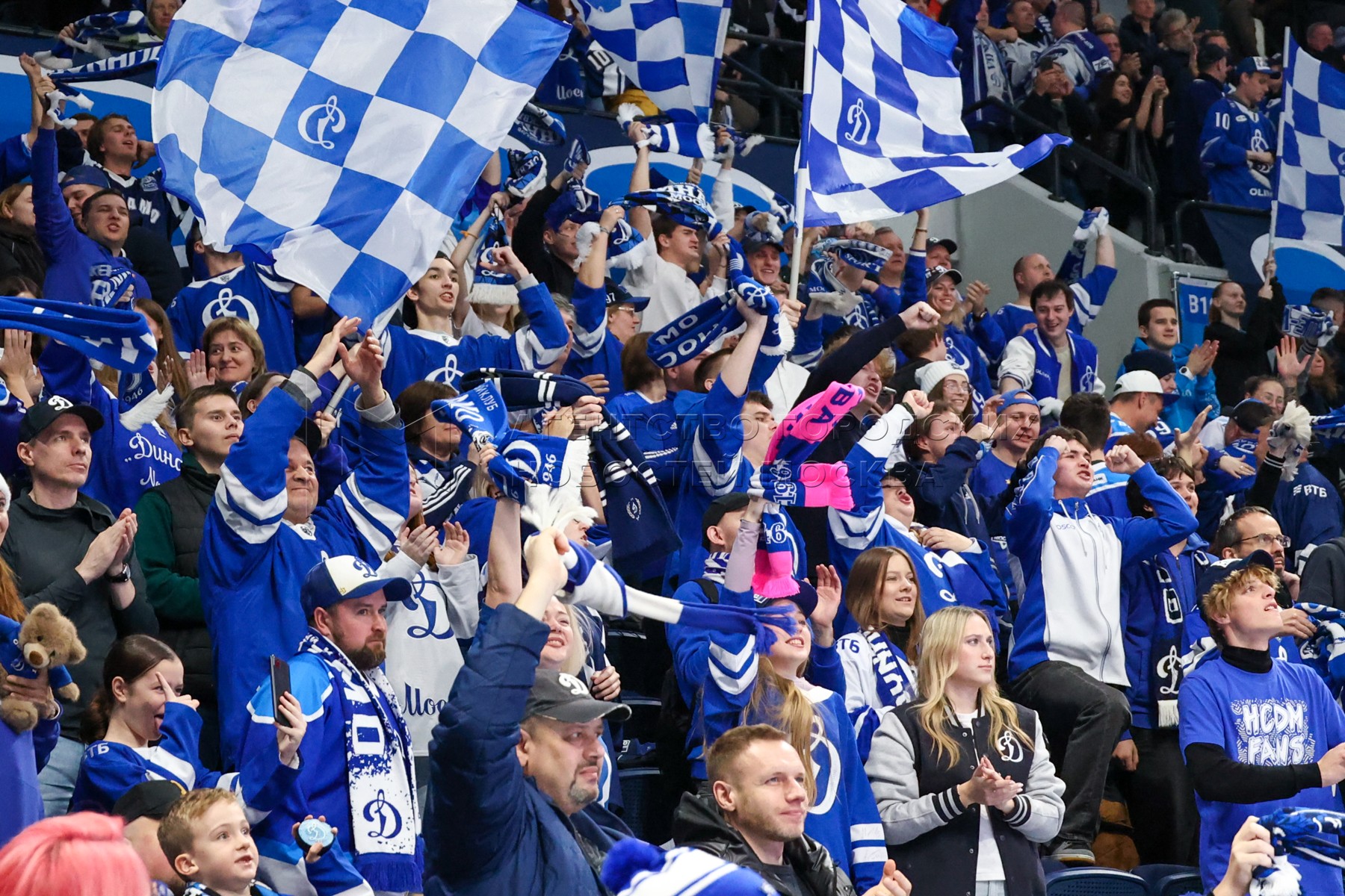 Болельщики ХК «Динамо» во время матча «Динамо» (Москва) – ЦСКА (Москва) на стадионе «ВТБ Арена» в рамках регулярного чемпионата Континентальной хоккейной лиги (КХЛ).
