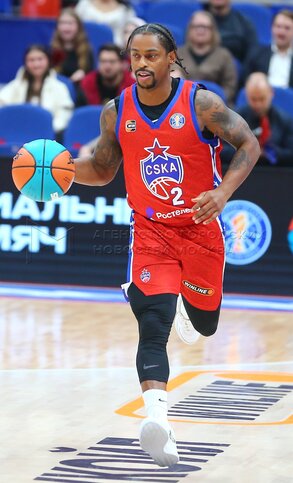 Игрок Мело Тримбл (ЦСКА) во время баскетбольного матча между столичным ЦСКА и кра...