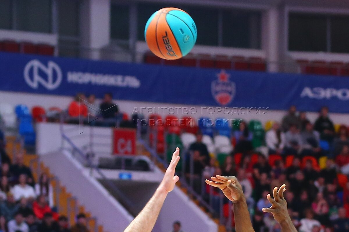 Игровой момент во время баскетбольного матча между столичным ЦСКА и краснодарским...
