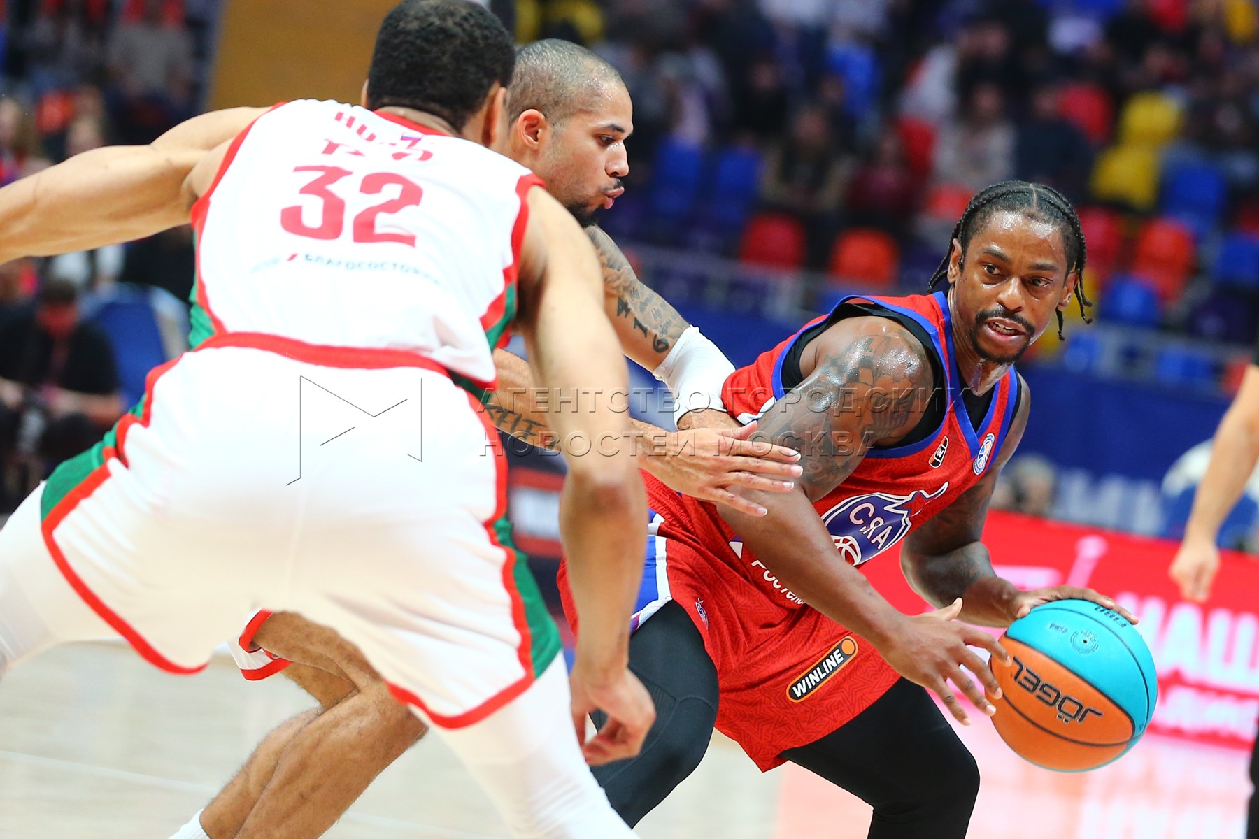 Игроки слева направо – Ливио Жан-Шарль (ЦСКА), Мело Тримбл (ЦСКА) и Антон Квитков...