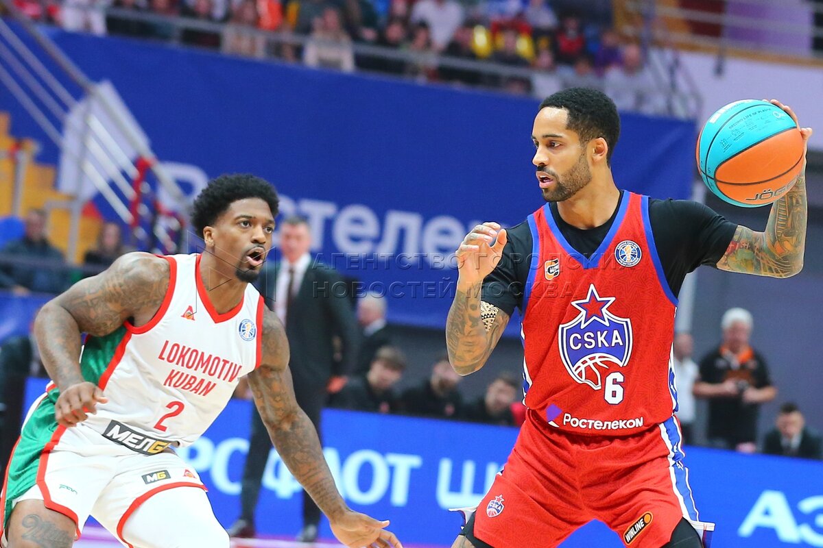 Игроки слева направо – Тони Джекири (ЦСКА) и Даниил Коско (Локомотив-Кубань) во в...