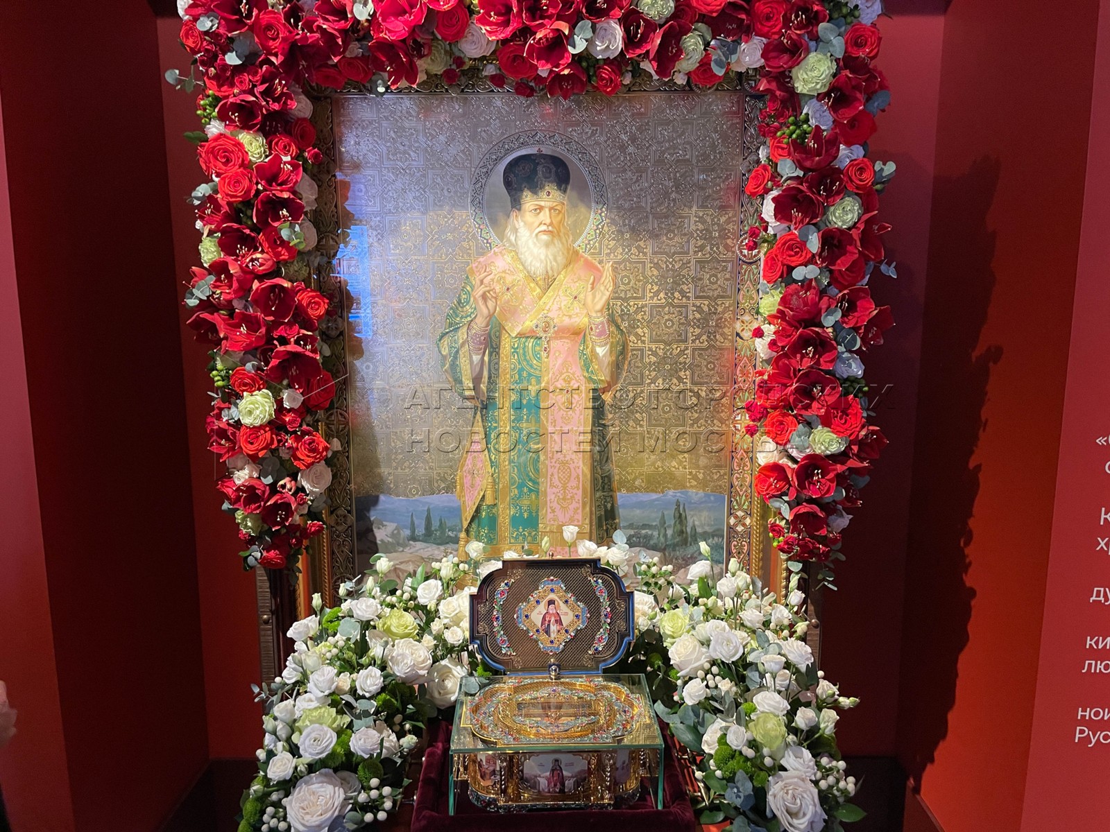- Описание: Икона святителя Луки Крымского (Войно-Ясенецкого) и ковчег с его мощами. Историко-документальная выставка «Великая Победа. Россия – моя история» в центральном выставочном зале «Манеж». Фото: Владимир Новиков, пресс-служба мэра и правительства Москвы.